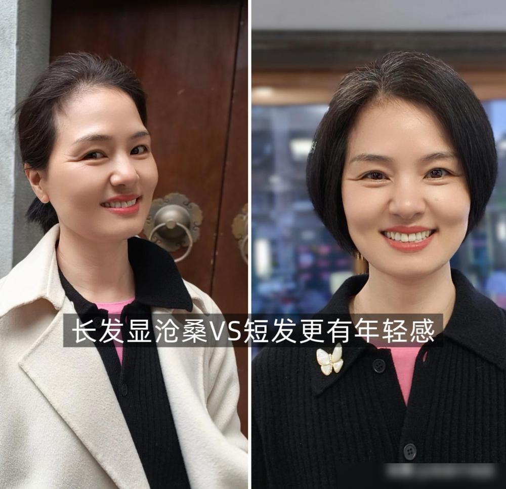 中年女人,究竟适合“短发”还是“长发”?看素人对比图你就懂了 💇‍♀️女人到了中年,发型真的能改变整个人的状态。长发短发,差别不是一般的大。看了几组对比图,感觉短发确实更提气。 😲第一组图,同一个人留长发显得有点没精神,脸上皱纹都明显了。剪了短发之后,整个人都精神了,看起来年轻十岁都不止。长发容易显得拖沓,短发利落多了。 👩第二组对比更明显。长发会把五官衬得扁平,特别是方圆脸,剪了肩上短发再加个八字刘海,脸型立马就立体了。果然发型选对,能优化面部线条。 💆‍♀️第三组图讲的是发量问题。长发容易贴头皮,显得头发少。短发就不一样了,发根立起来了,头发看着又多又蓬松。这点太真实了,长发确实容易往下坠。 👀最后一组对比绝了。长发虽然不难看,但就是普通。一剪短发,整个人都有辨识度了。看来短发真的能把注意力集中到五官上。 💡不过剪短发容易,打理才是关键。不能剪完就不管了,得学会日常维护。 🙅‍♀️首先不能太乱,得梳出层次感。三七分比中分更适合短发,发尾带点卷度更好看。太贴头皮就显老气。 💁‍♀️烫发也要注意,别选小卷,太难打理。微卷最实用,洗完头随便吹吹就成型。手残党也能轻松搞定。 🛠️工具得备齐。直发梳、卷发棒这些都得有。短发其实很百变,换个刘海或者卷度就是另一种风格。重点是刘海要往后带,外翻显脸小。 💫推荐几款实用的短发造型。层次感齐颈短发适合方圆脸,能修饰脸部线条。配上薄刘海特别减龄。 😊斜刘海酒窝短发适合小圆脸。斜刘海比齐刘海更显灵动,长度到下巴刚好能包住脸型。 👩🦱蛋蛋短卷发今年特别火。卷度自然不夸张,慵懒又时髦。比小卷好打理,适合想烫发又怕麻烦的人。 👵齐耳短发最省事。不用烫,保持顺直就行。可温柔可干练,配斜刘海或者偏分都好看。 💁‍♀️总之中年女性选发型,长度、弧度、发色都得考虑。短发确实比长发更好驾驭,关键是显年轻。