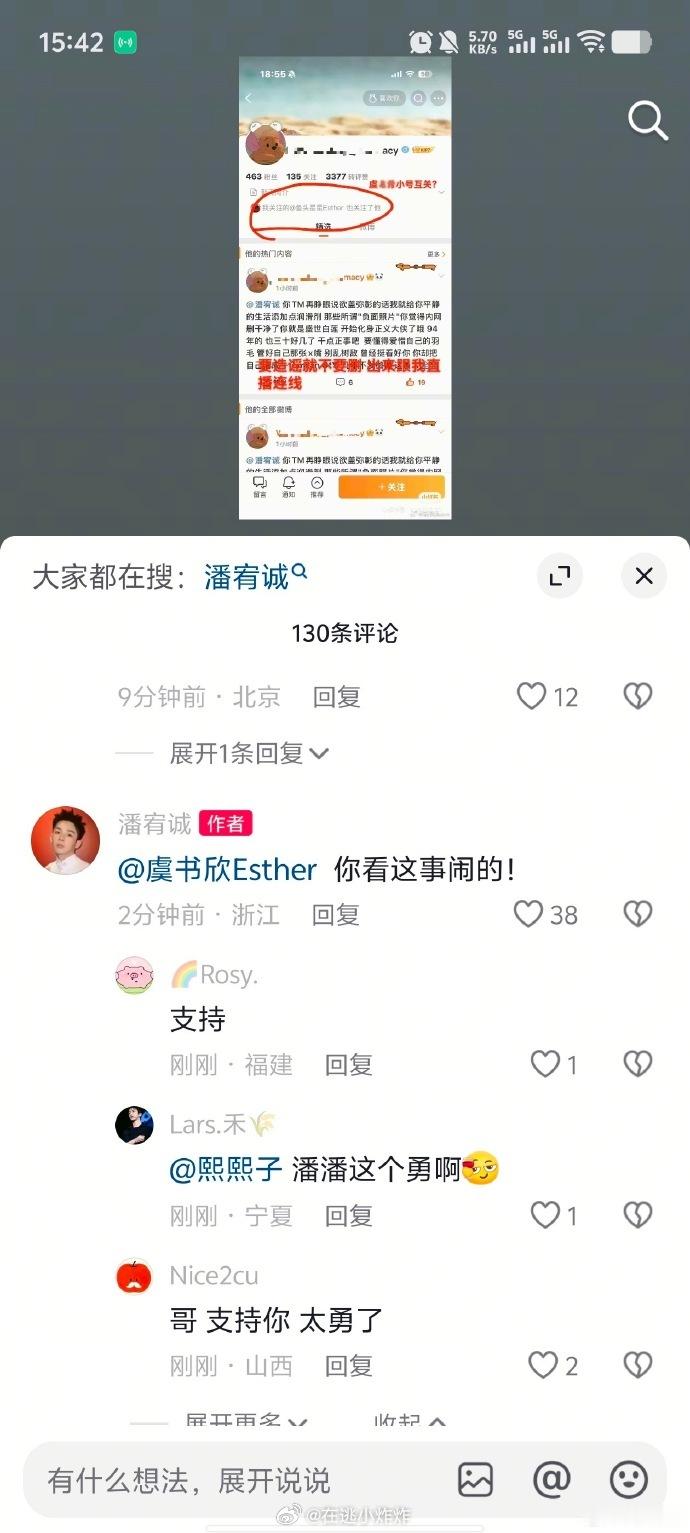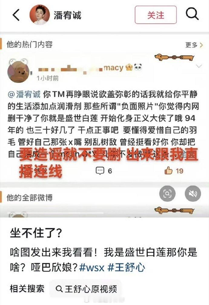 潘宥诚和虞书欣咋回事他爆料,女同学带男生开房,要他a一半钱粉丝让他爆大名,他说叫王舒心今天有人叫板让他别乱说话,他艾特了虞书欣
