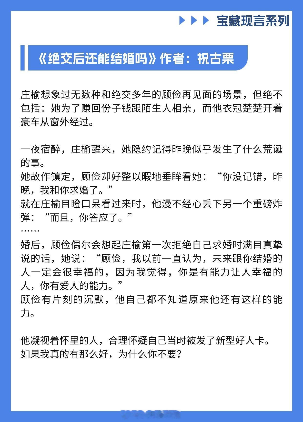 【宝藏现言系列】他想和她困在哪怕不能说爱的围城《爱意上浮》作者:叹西茶《绝交后还能结婚吗》作者:祝古栗《皮囊》作者:扁平竹《好事多磨》作者:赵舒音《不搭》作者:苏时玖《或咫尺或远方》作者:陈之遥推文推文言情小说推荐
