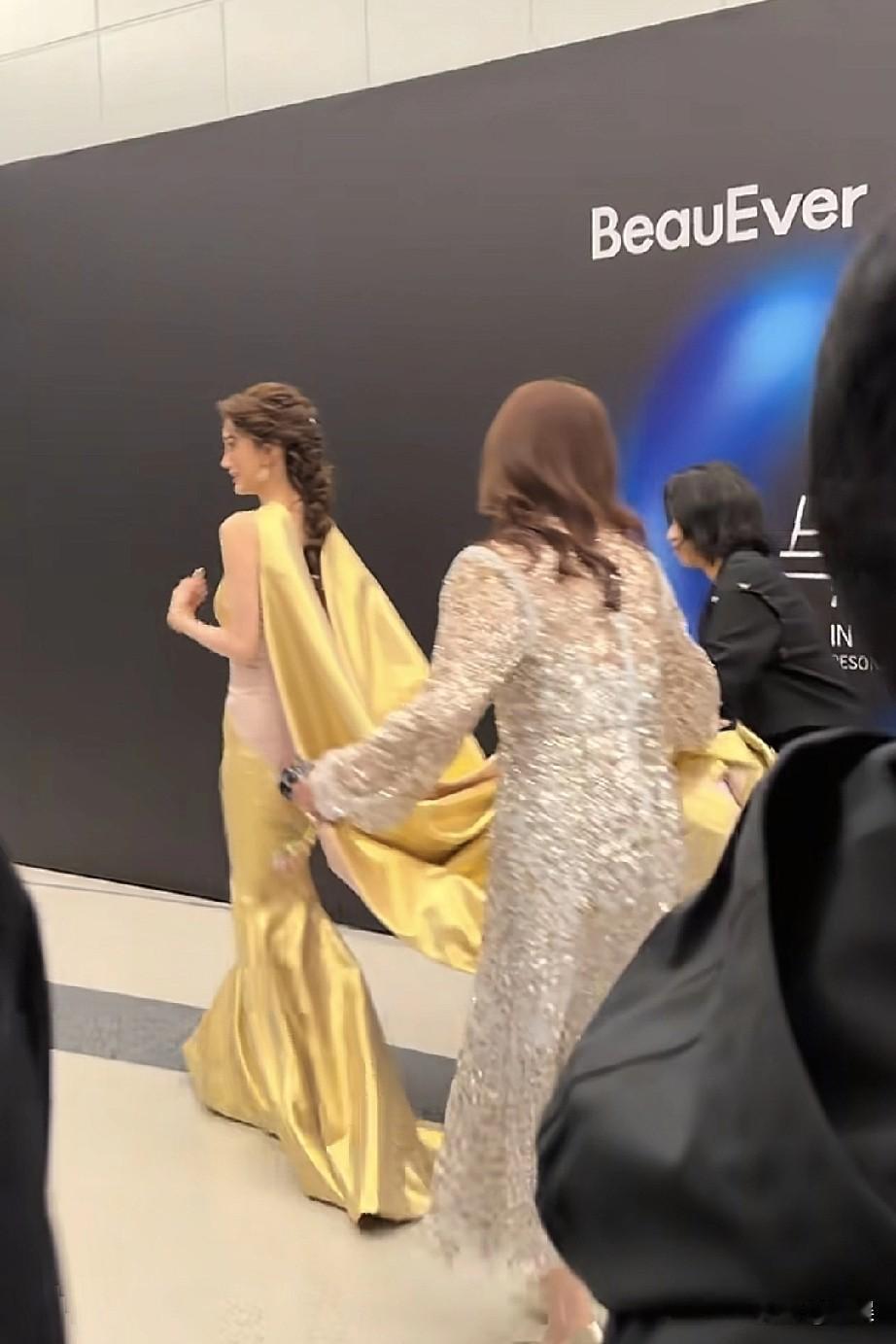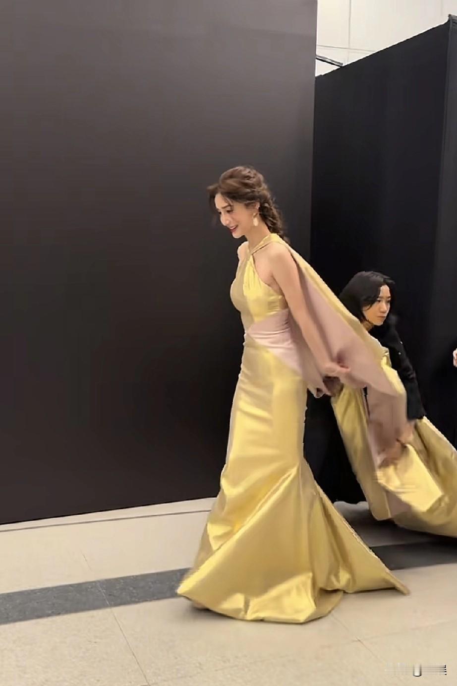 在2025芭莎时尚之夜的后台,杨颖身着一袭亮眼的黄色挂脖长裙优雅现身,裙身流畅的