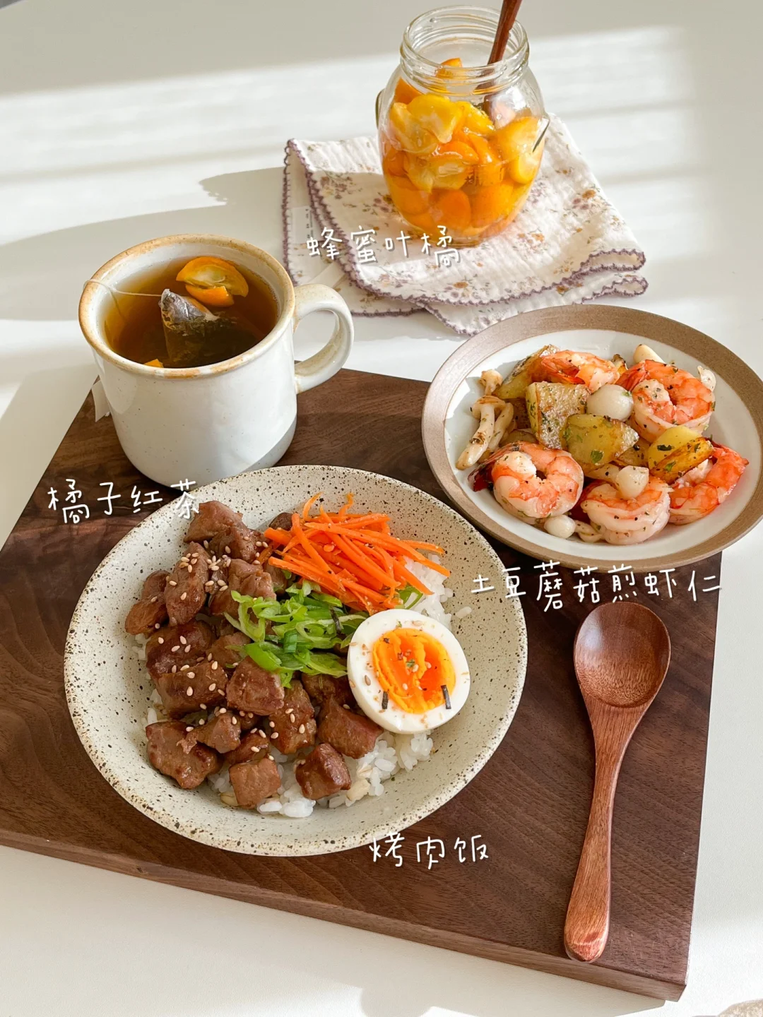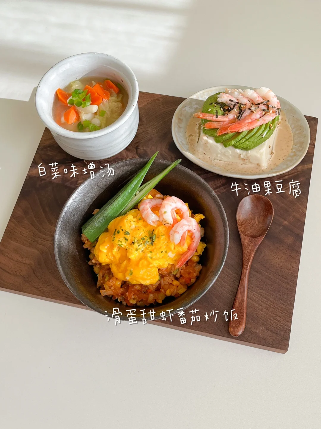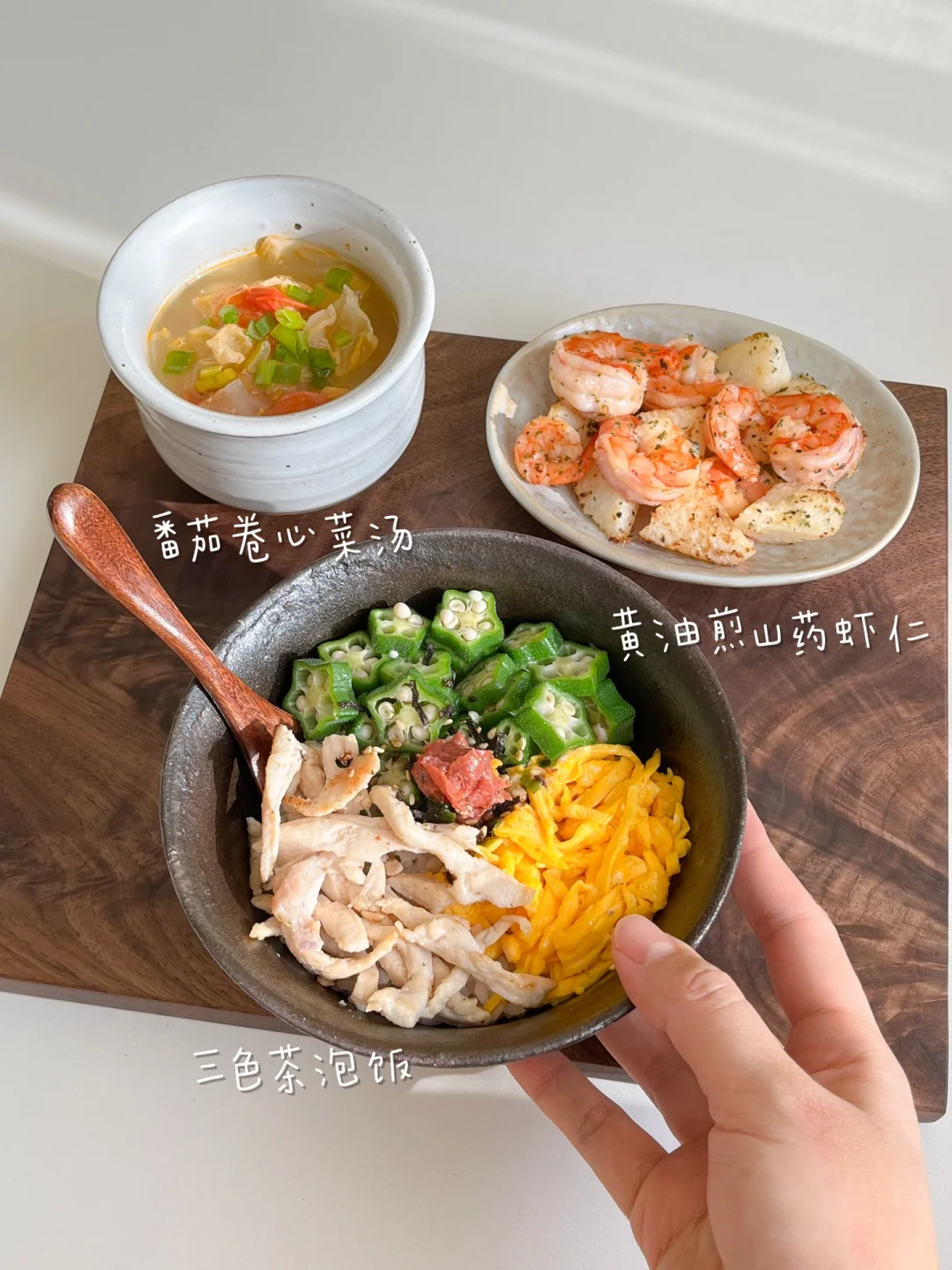 “就算一个人吃饭,也别亏待了自己!” 整理了一下最近比较喜欢的午餐 都是简单又好做的 营养健康 做法在图上 🟠泡菜金枪鱼豆腐拌饭+年糕汤+菠萝气泡水 🟡滑蛋甜虾番茄炒饭+牛油果豆腐+白菜味增汤 🔴烤肉饭+土豆蘑菇煎虾仁+橘子红茶 🟢三色茶泡饭+黄油煎山药虾仁+番茄卷心菜汤