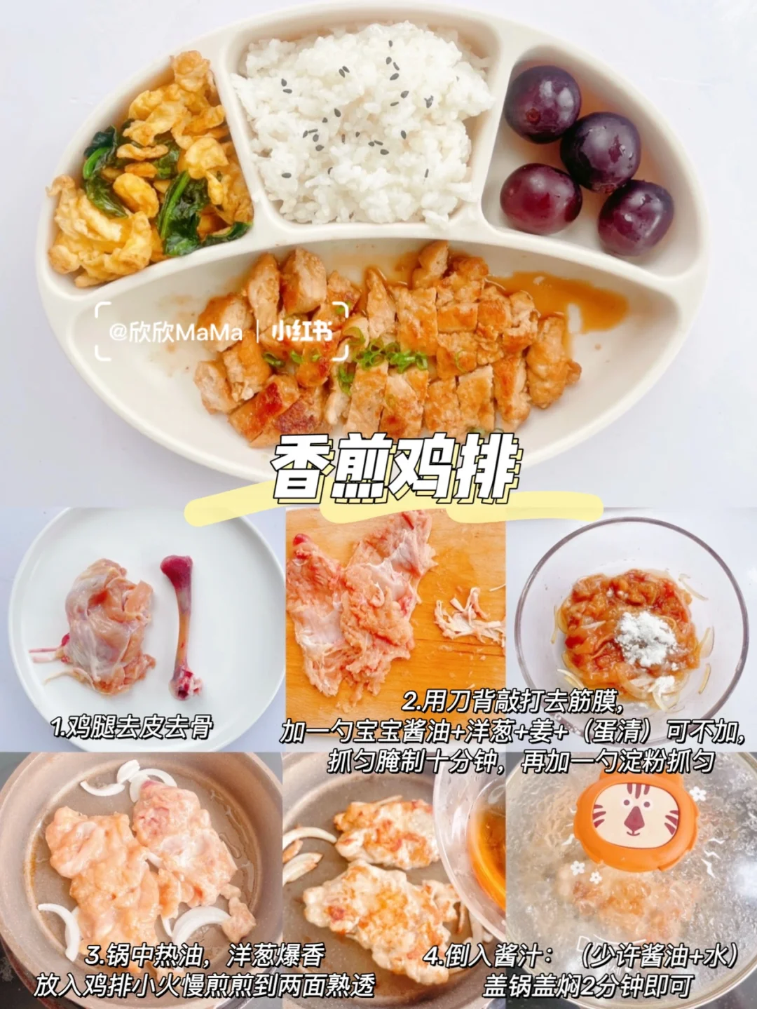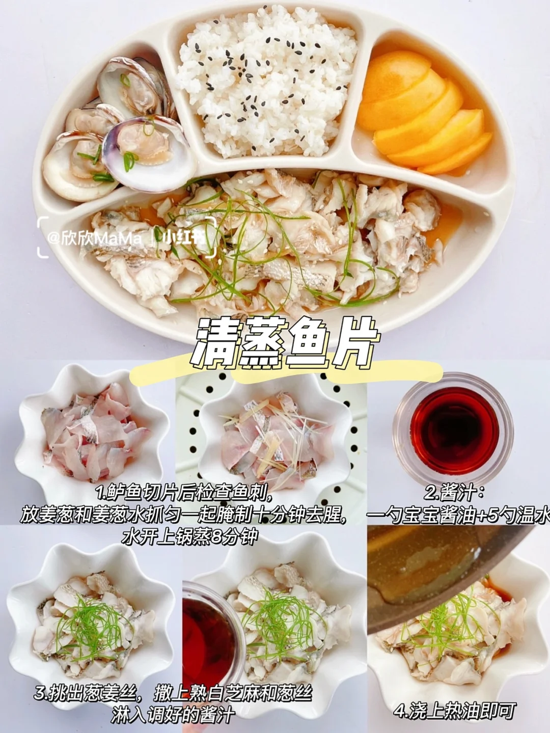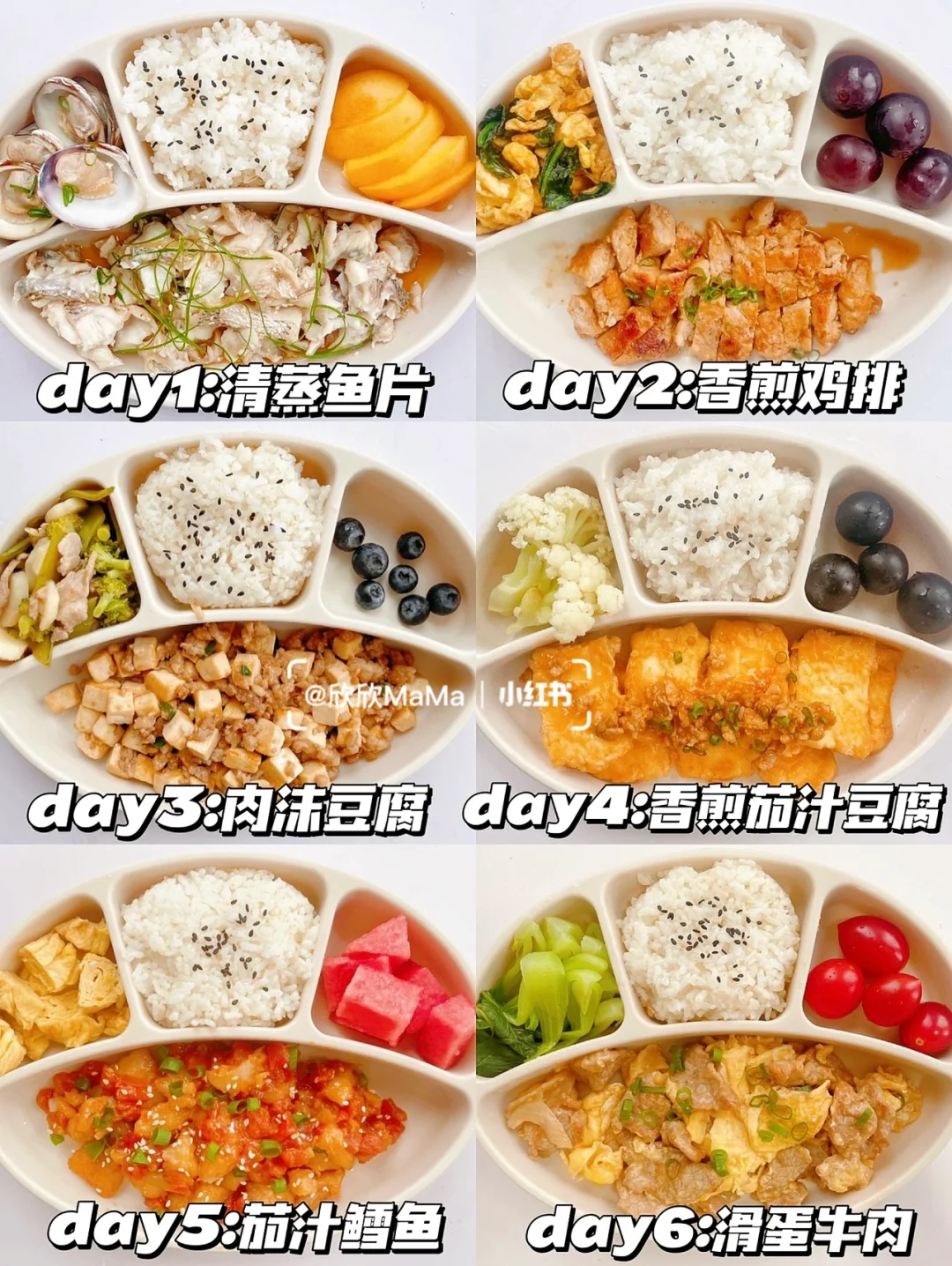 今天整理了小欣欣平时吃的午餐和晚餐,来分享给大家~每款都好吃哦~宝宝胃口不好~平时不知道给宝宝吃什么的?统统看过来哦‼️有肉有菜有饭后水果,营养搭配,开胃下饭!妈妈们安排起来吧! 〰️〰️ Day1: 清蒸鱼片+蛤蜊+桃子+米饭 . Day2:香煎鸡排+菠菜炒蛋+葡萄+米粉 . Day3:肉沫豆腐+西兰花山药炒肉片+蓝莓+米饭 . Day4:香煎茄汁豆腐+花菜+葡萄+米饭 . Day5:滑蛋牛肉+青菜+小番茄+米饭 . Day6:茄汁鳕鱼+煎蛋+西瓜+米饭 . 🌟所有食材根据宝宝咀嚼能力来安排,不加调味料个别1岁内的宝宝也能吃哦 🌟 具体步骤请看图文教程 有疑问🤔️也可以评论区留言喔😄 💡关注我带您解锁更多辅食制作