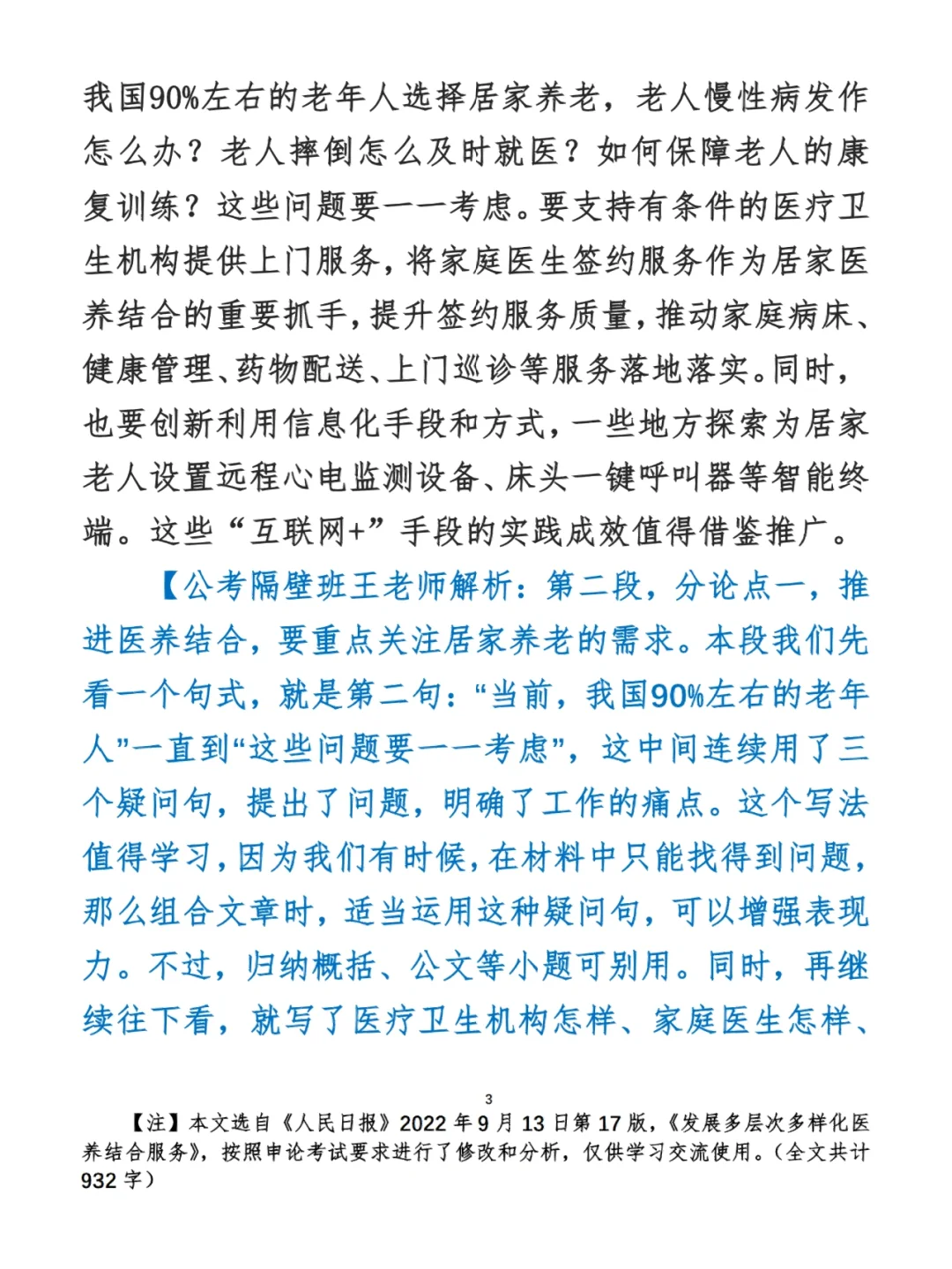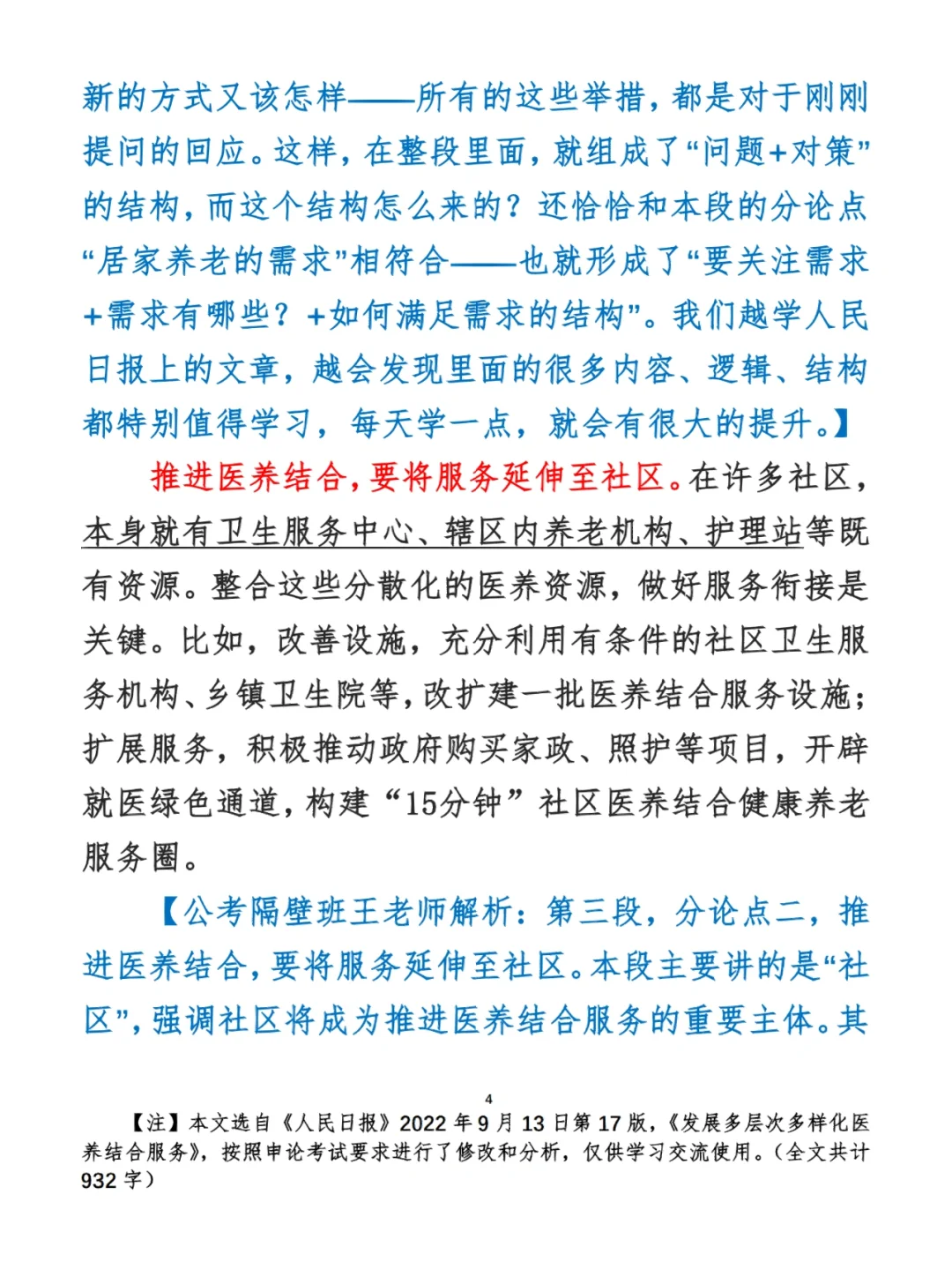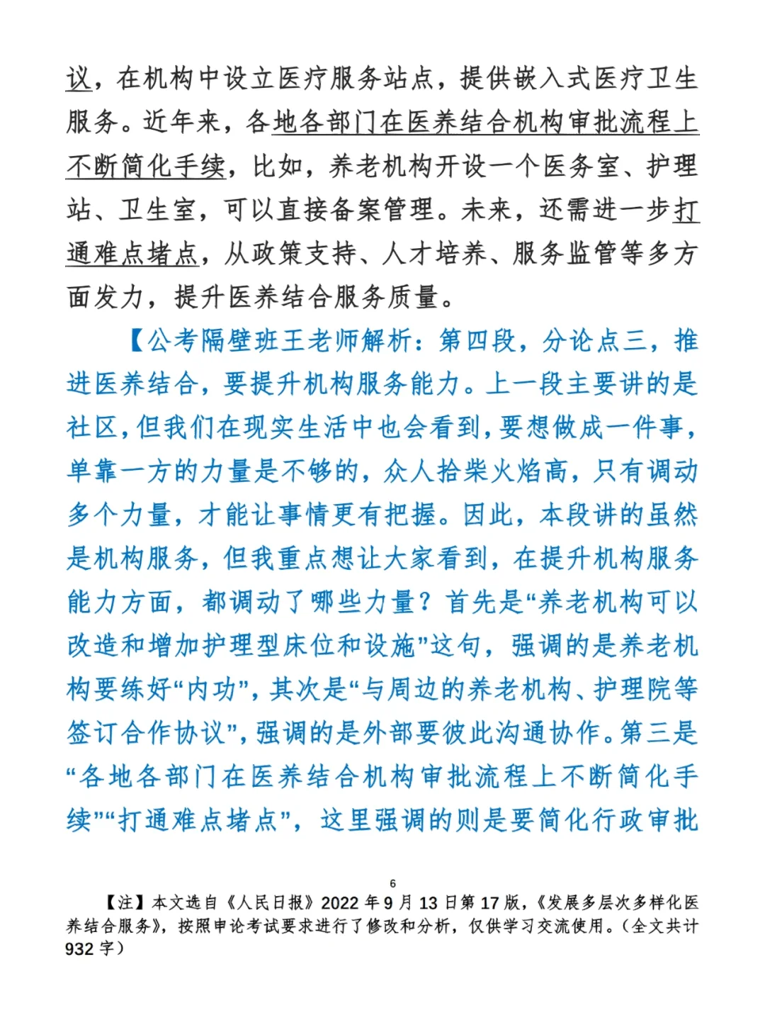 今日打卡作业: 1. 选一句你最喜欢的金句 2. 抄写全文红字+划线部分内容 3. 写完后在留言区打卡 ⭐️ ⭐️ ⭐️ ⭐️ ⭐️ ⭐️ 如何抄写:每天的抄写文章以图片形式发在“公考隔壁班王老师”账号,红色字是重点句和结构句,黑色字是正文,蓝色字是解析,大家抄写时不必抄蓝色字。建议先通读全文(包括蓝色解析部分),做到心中有数再开始抄写,效果会更好。 关于文章:抄写文章来源于人民日报,但每篇文章我都根据申论考试要求进行了修改,主要集中在四个方面:一是重写或修改开头、结尾;二是统一段首句句式结构;三是调整段落字数,使文章结构更均衡;四是简化复杂长难句,使之更具可模仿性。每篇文章修改幅度不同,无论修改多少,都是基于申论考试要求,毫无对人民日报文章品评之意。(此处致敬人民日报) 关于解析:我会在文章每段后面加一段蓝色字的解析,是我自己在抄写时的感悟,篇幅时间有限,不能面面俱到,但求重点突出。如果你有其他感悟,也希望能在评论里分享,我们相互学习、共同进步。 ⭐️ ⭐️ ⭐️ ⭐️ ⭐️ ⭐️ 这里是公考隔壁班王老师独创的“每天半小时・申论80分”抄写团,欢迎加入我们!