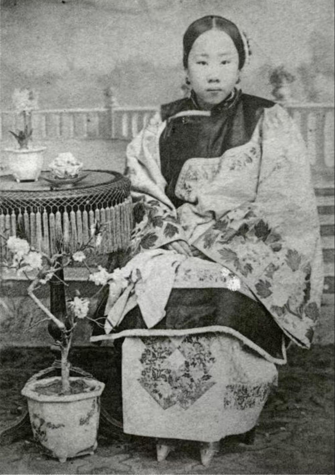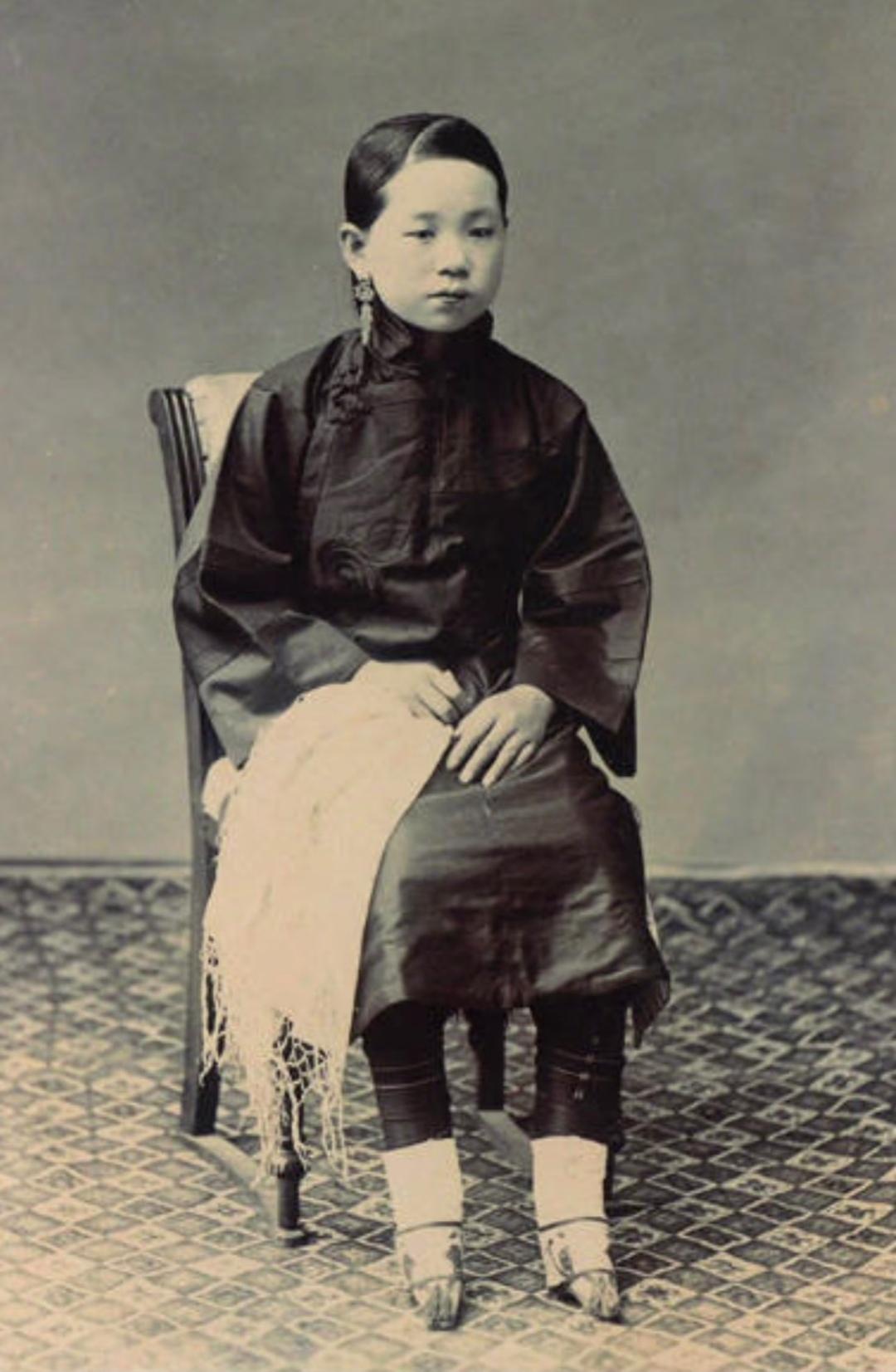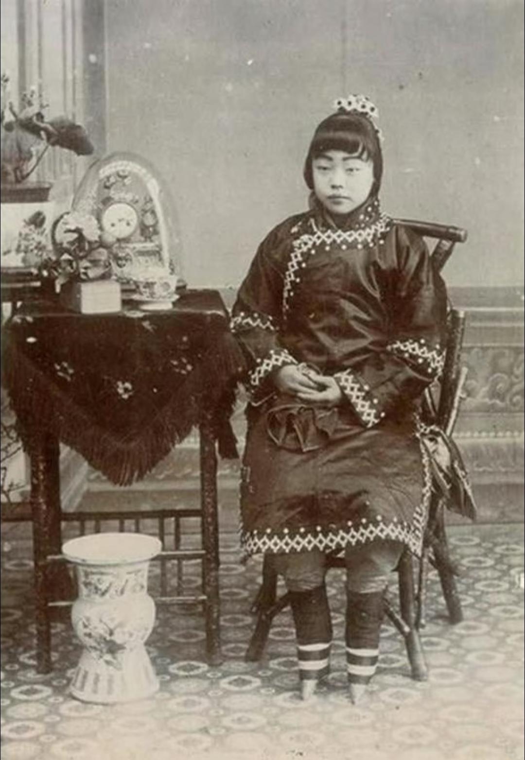 晚清老照片 三寸金莲。缠足(裹足、裹脚)是中国古代的一种陋习,就是把女子的双脚用布帛缠裹起来,使其成为又尖又小的“三寸金莲”。