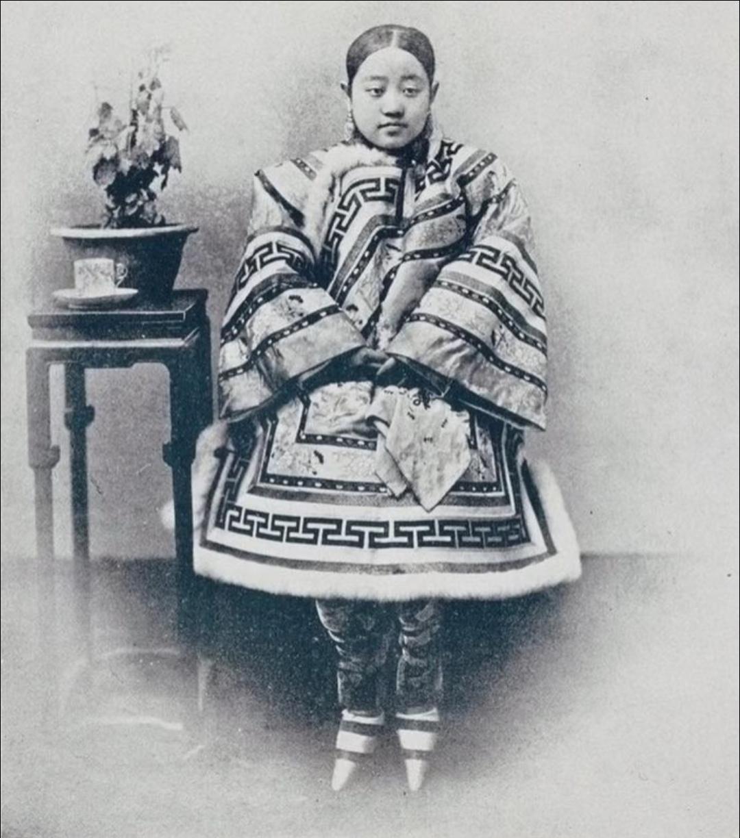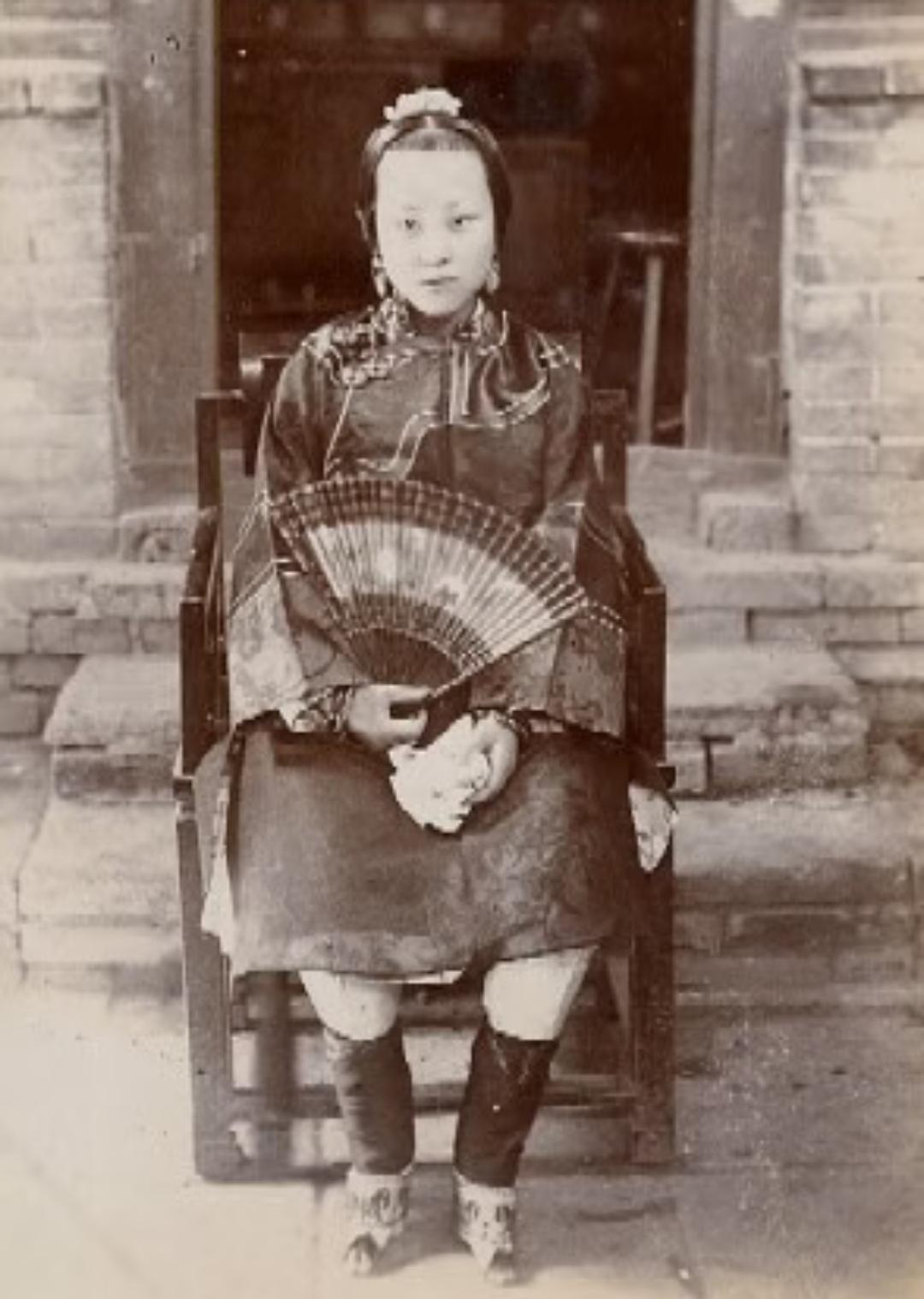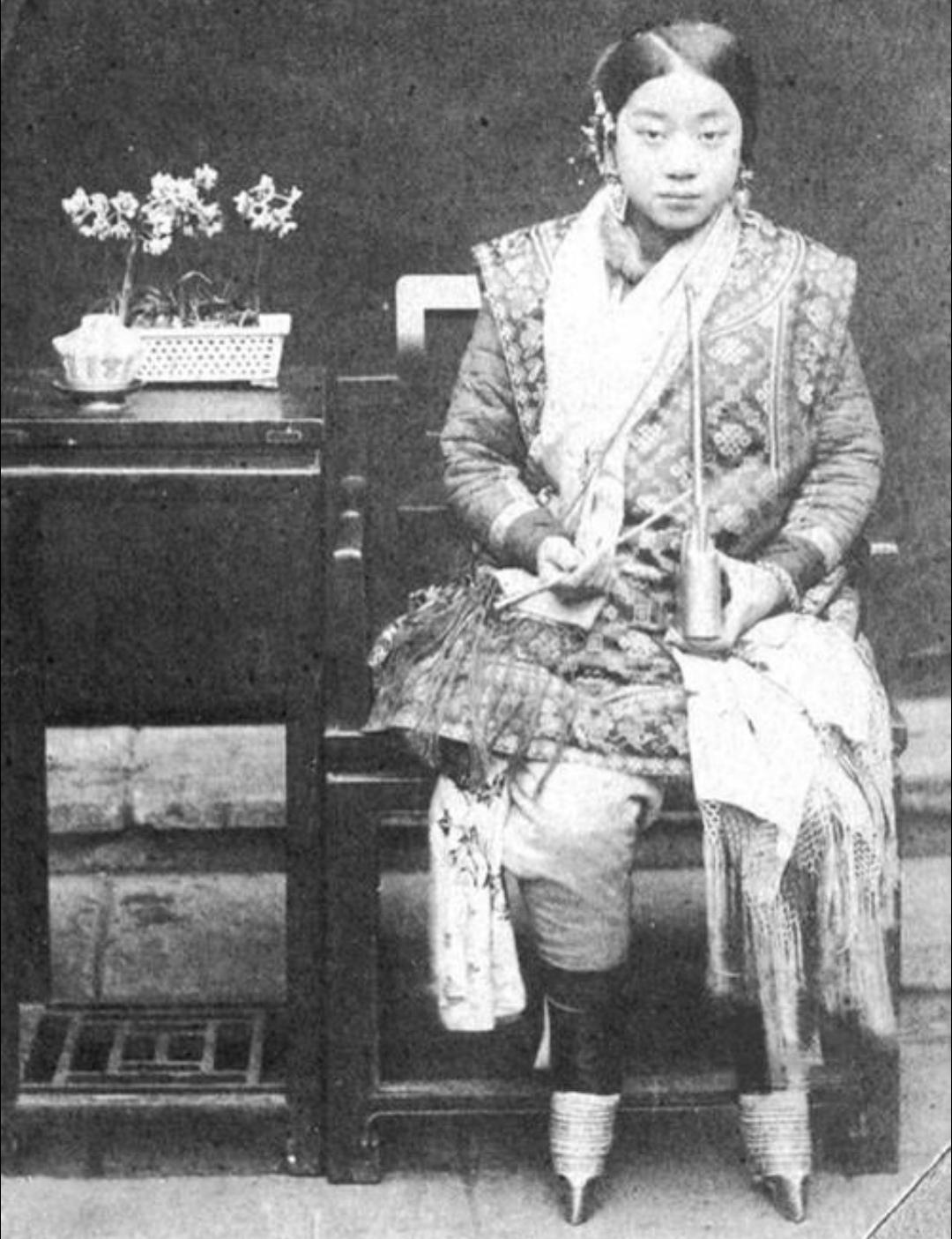 晚清老照片 三寸金莲。缠足(裹足、裹脚)是中国古代的一种陋习,就是把女子的双脚用布帛缠裹起来,使其成为又尖又小的“三寸金莲”。