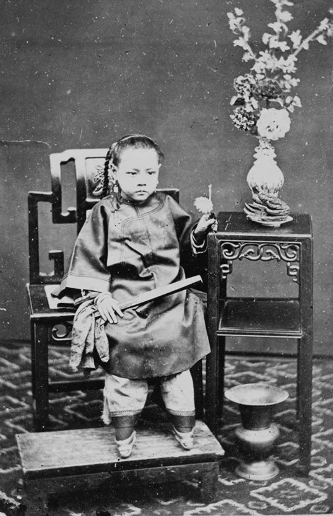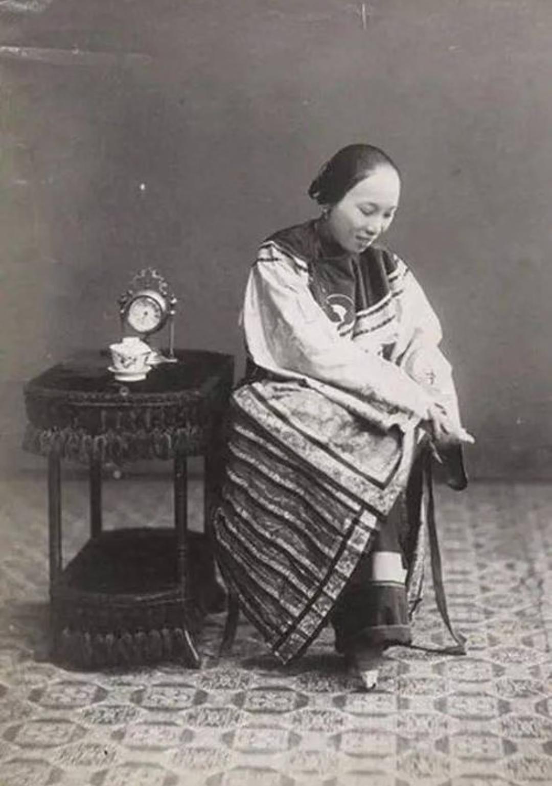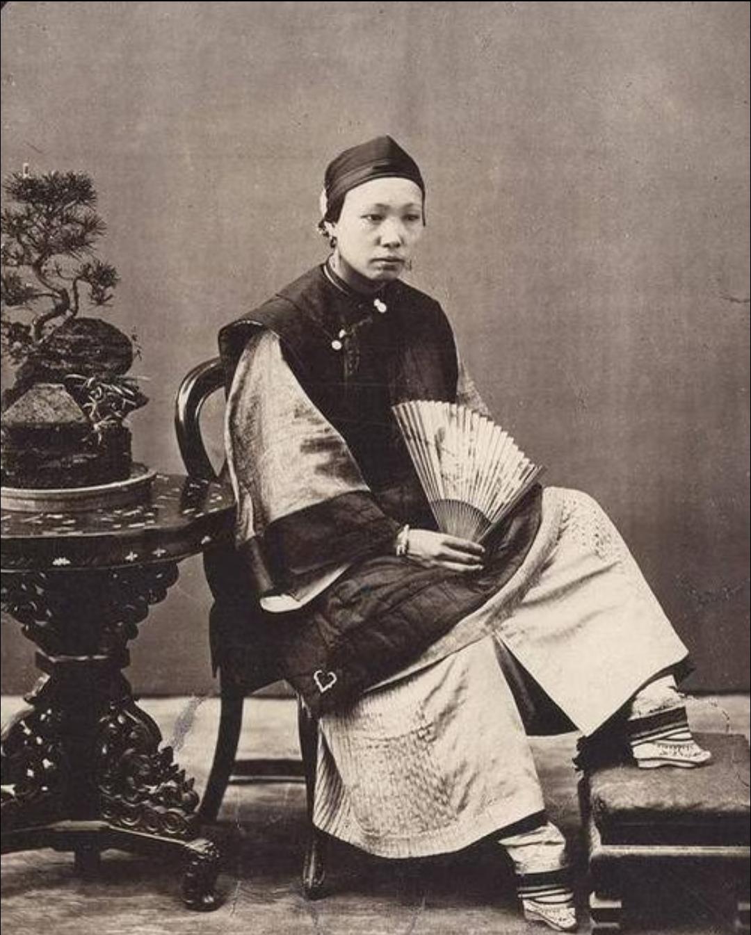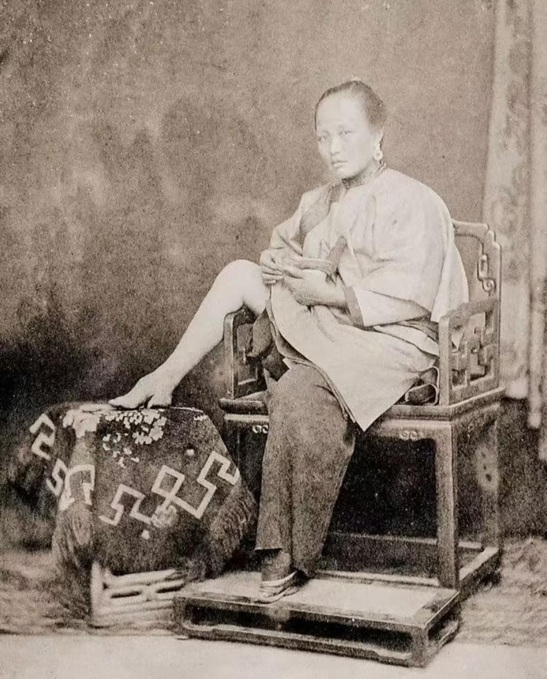 晚清旧照 三寸金莲 。缠足(裹足、裹脚)是中国古代的一种陋习,就是把女子的双脚用布帛缠裹起来,使其成为又尖又小的“三寸金莲”。