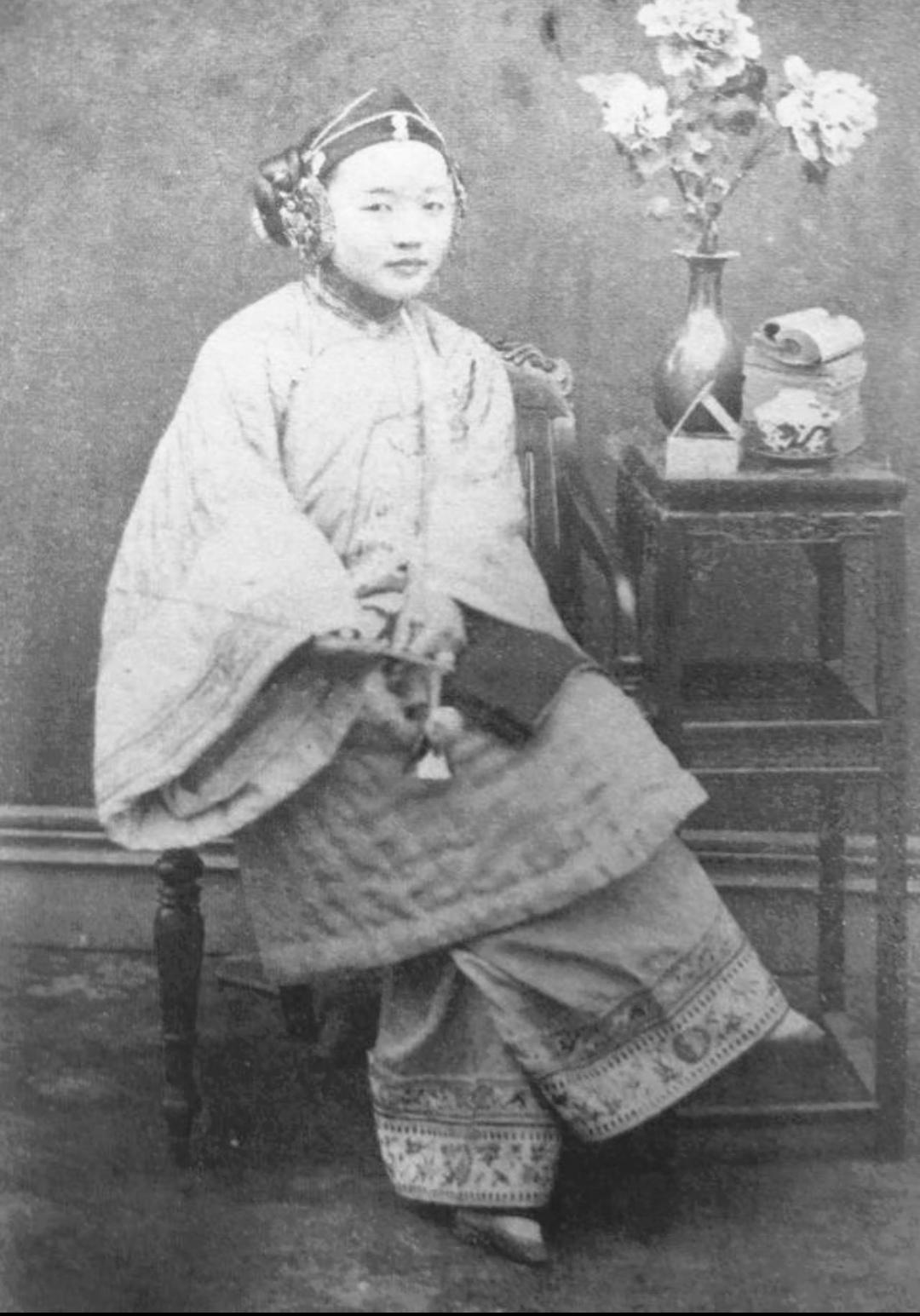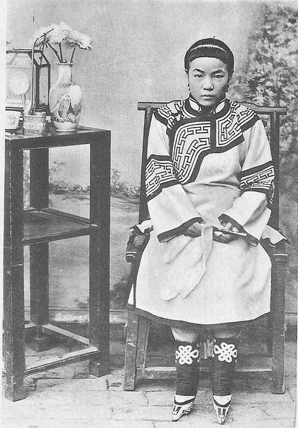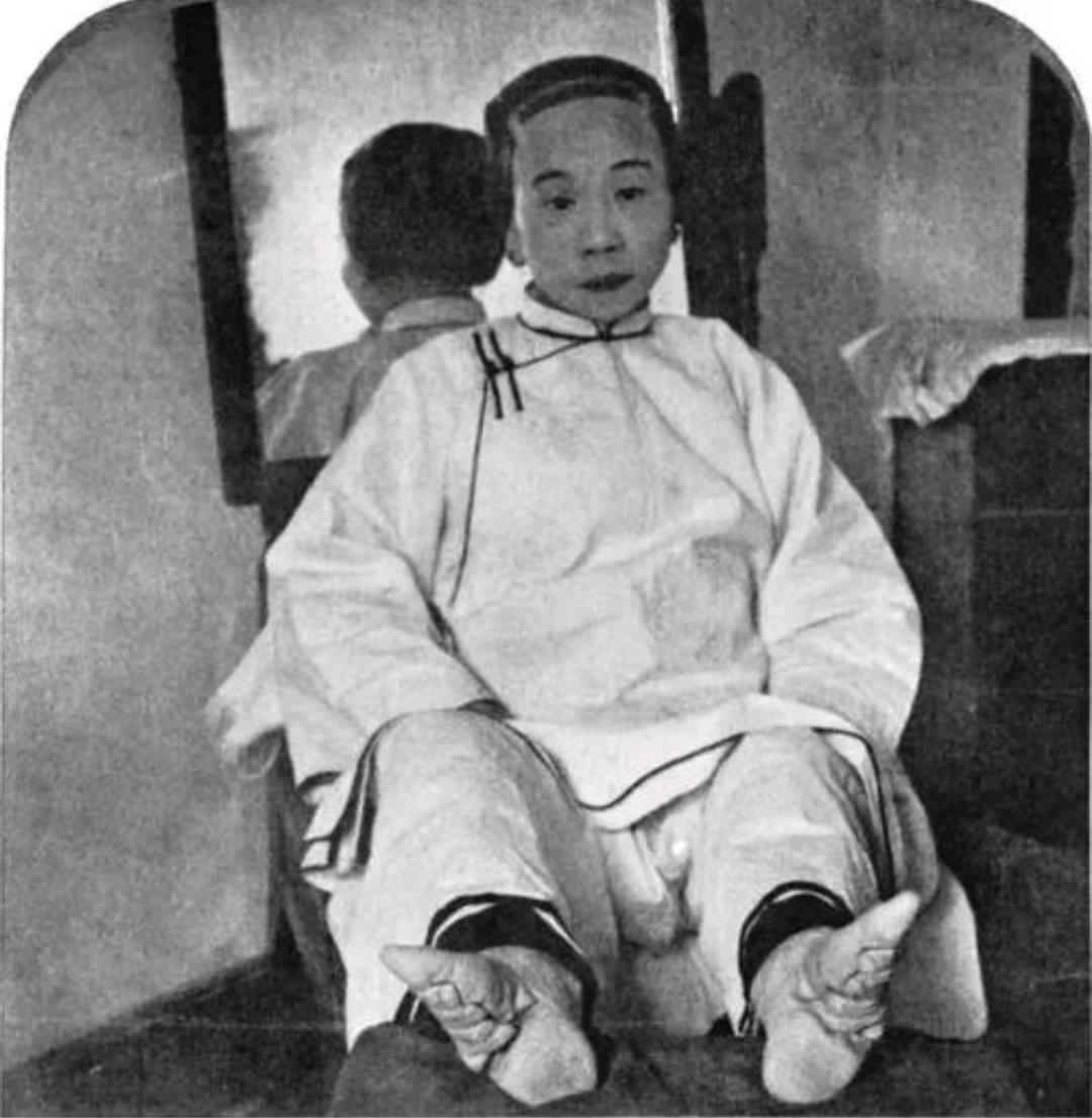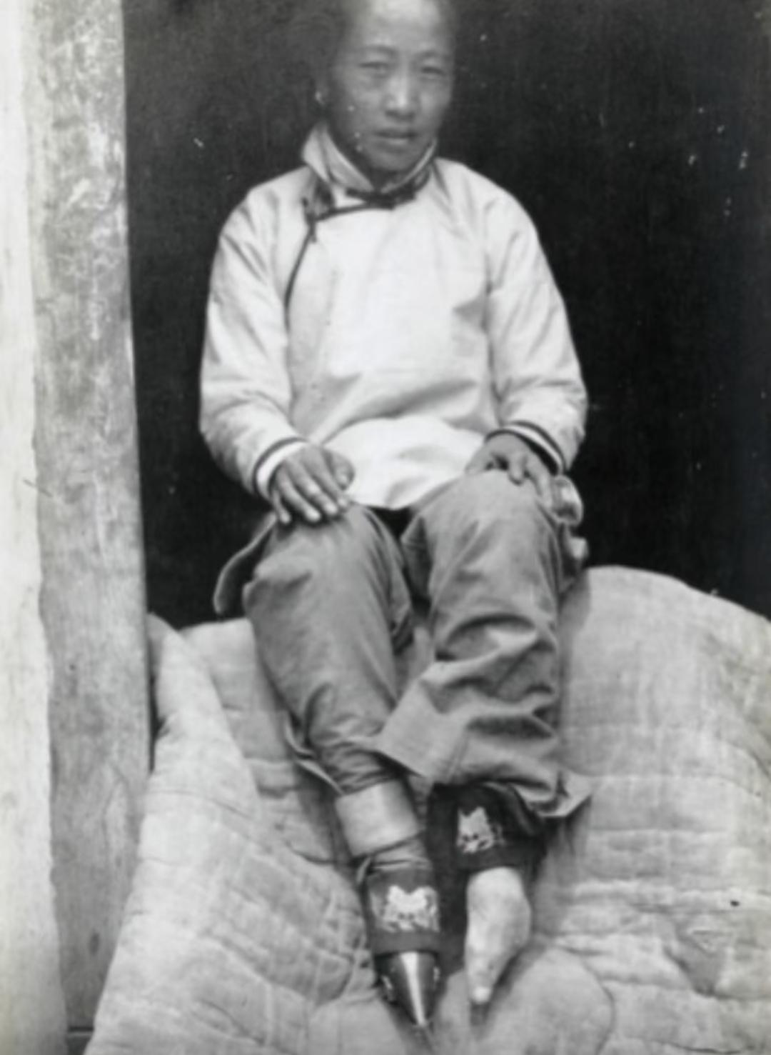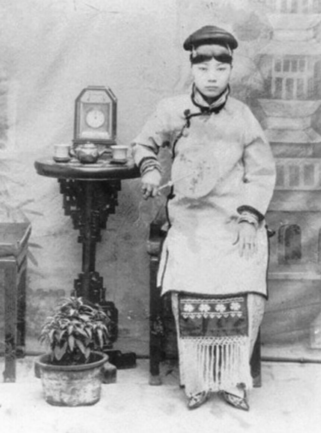 晚清旧照 三寸金莲 。缠足(裹足、裹脚)是中国古代的一种陋习,就是把女子的双脚用布帛缠裹起来,使其成为又尖又小的“三寸金莲”。