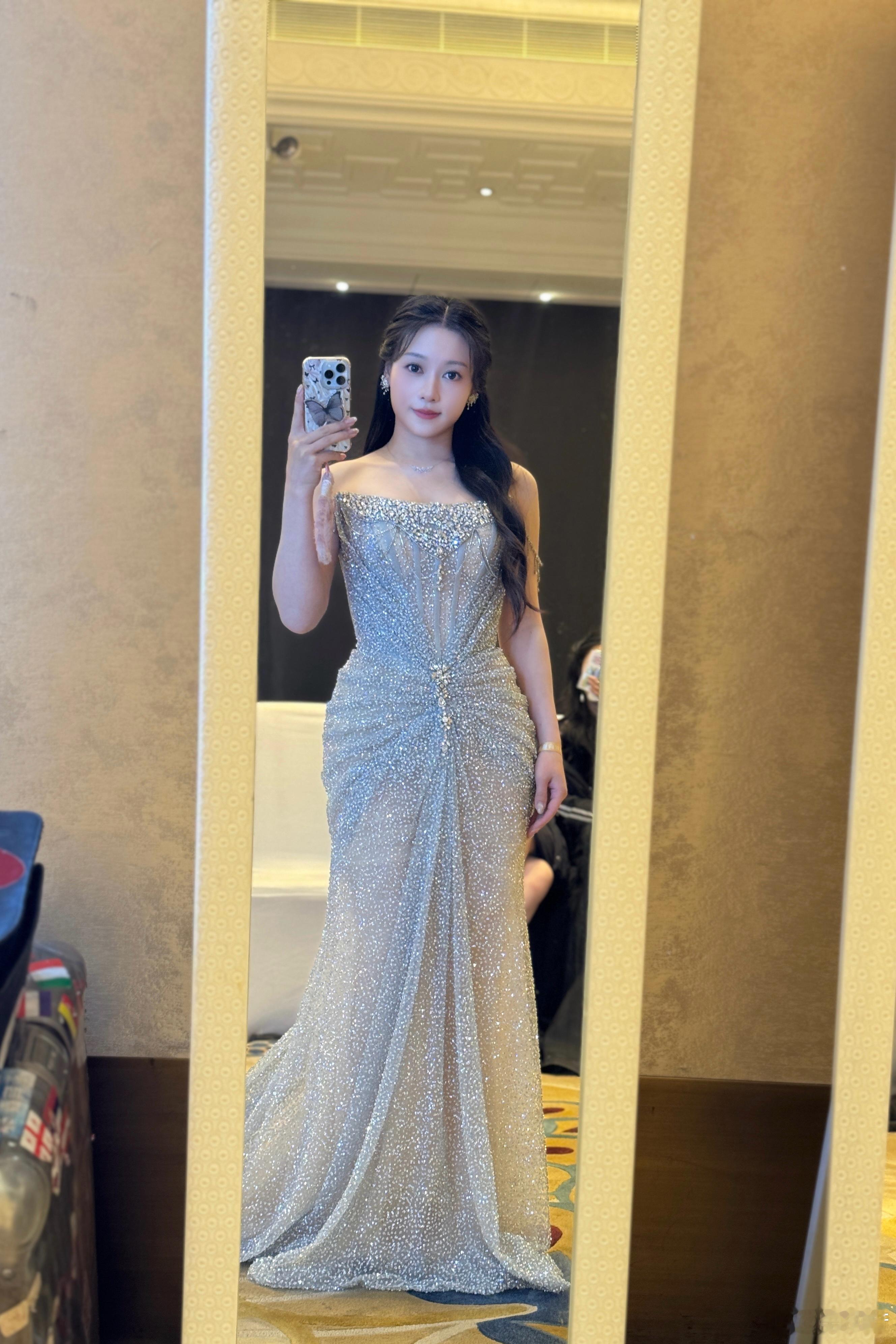 戴燕妮冰蓝色刺绣碎钻礼裙戴燕妮身穿TonyWard2025秋冬定制系列蓝色礼