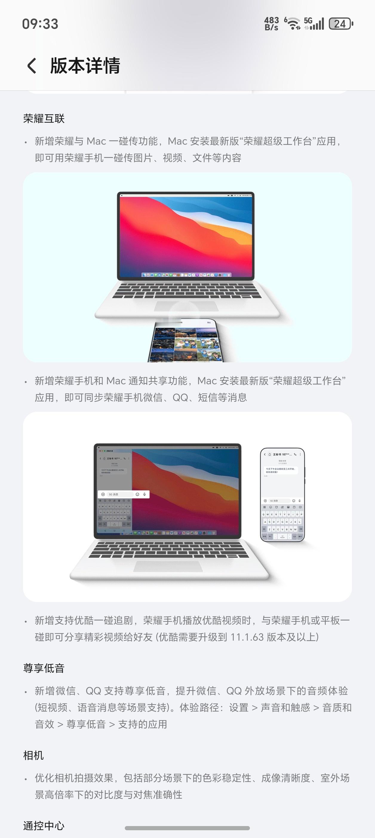 荣耀Magic8又有系统更新了,120版本新增了AI炫光去除、QQ微信尊享低音等