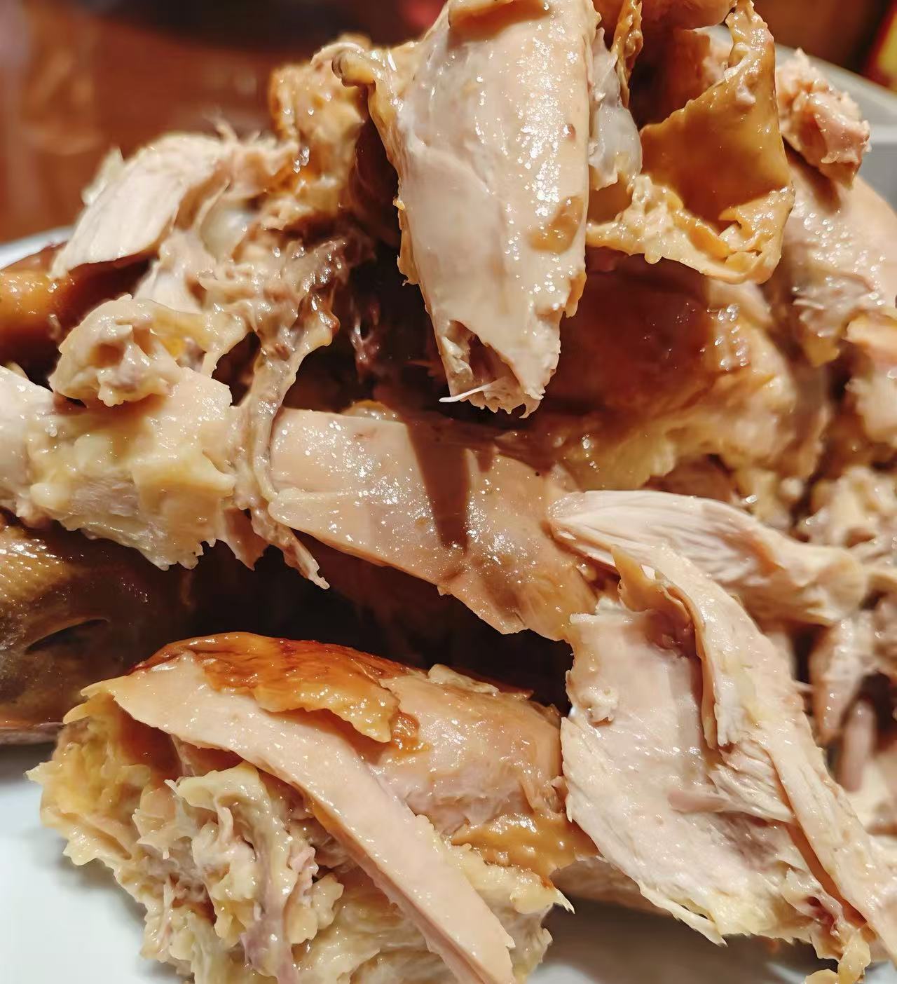 4️⃣.古法烧鸡,烧鸡烤制的火候好,皮是琥珀色,鸡肉鲜嫩,吃起来鲜嫩。