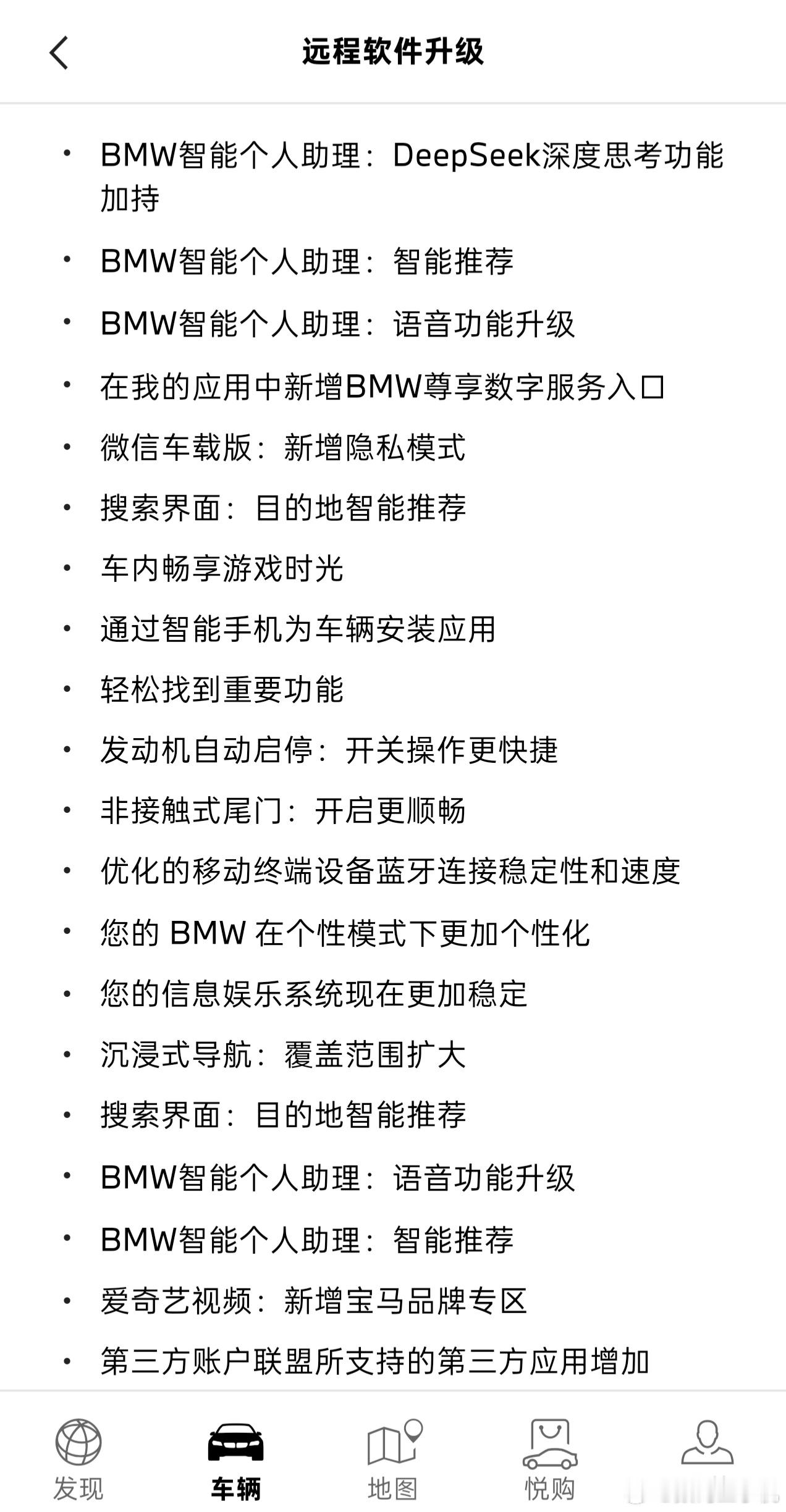 新款BMW X3已经收到了更新推送,更新内容见图三,算是比较及时了,自动启停可以选择更多方式关闭,长按快捷键或者语音都可以,另外就是自制彩蛋也上线了,大家可以玩耍了,更新后语音助手要重新设置一遍哈。