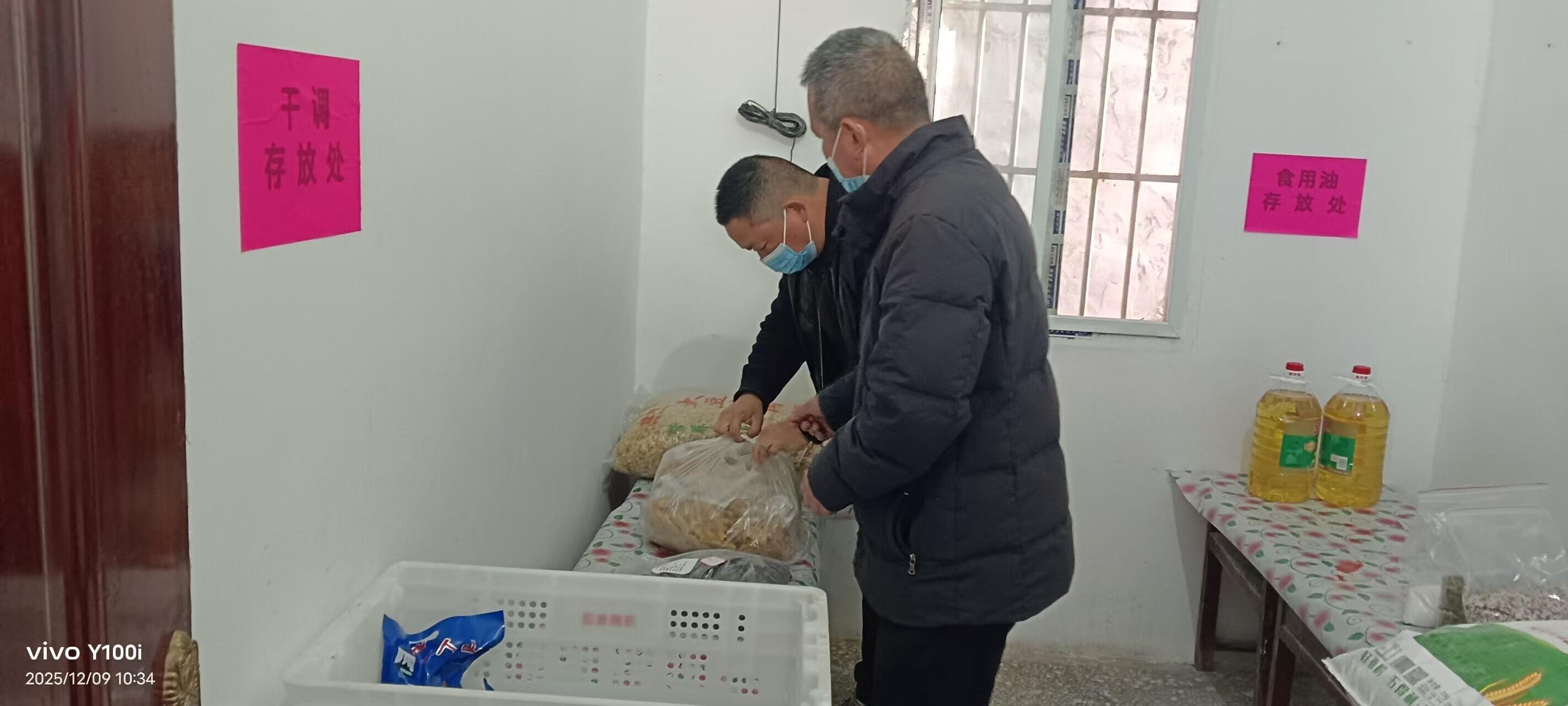 检查过程中,检查组一行深入学校食堂后厨、仓储间、洗消间等关键区域,严格对照相关标准,对食品原料采购索证索票、仓储管理、加工制作流程、餐具清洗消毒、食品留样、从业人员健康管理以及“明厨亮灶”运行等情况进行了逐项排查和问询。检查组尤其关注了农村学校在食材源头把控、规范操作等环节的具体措施与执行记录。