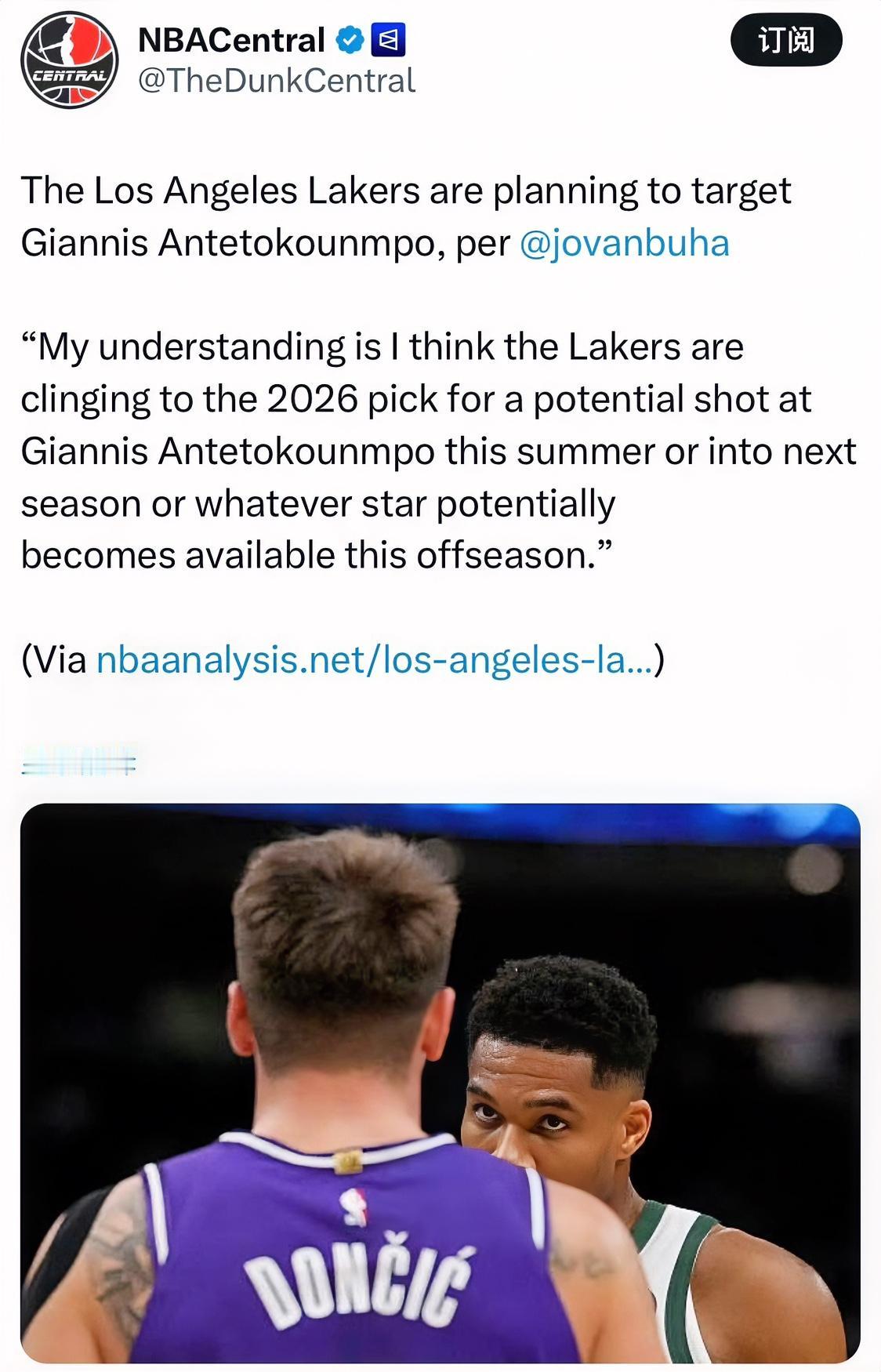 湖人追字母的说法言之过早! 前湖人队记Buha在节目中表示,球队之所以一直舍不得出26首轮签,是在为明年休赛期争取先签后换字母做资产储备! 那么该说法可信度有多高呢?我们先来看两点: 1.湖人囤积到期合同与首轮签有迹可循,因为球队到现在都没有与老詹、八村、文森特、克莱贝尔等人敲定任何续约事宜,并且明年休赛期湖人将拥有至少3个首轮与多个互换,操作灵活性大大提升,这让湖人有机会争取一位明星球员;但是,在2月6日前还存在一定变数,湖人本赛季进行到现在成绩与化学反应还不错,目前排西部前3,若出现补强机会,不排除管理层提前下手,这不就有美记在持续爆料湖人追求鹈鹕琼斯以补充3D侧翼的消息,因此我们还需要观察球队是否在中期日前操作才能下定论。 2.根据shams的报道,字母离队概率确实不小,但考虑到过去几年休赛期类似传言不断,很难说这不是字母又一逼宫球队补强的动作,加上雄鹿目前还在积极尝试中,他们仍有机会延续在交易市场的强势表现,即便事情成真,时间点也难以确定。 基于以上两点可以得出结论,Buha的说法很可能只是一个开源性的推测,两者之间联系在一起为时尚早,另外考虑到字母明年10月能与雄鹿达成一份4年近3亿的超级合同,裸签可能性极低,湖人则在签换交易中并不占优势,这些因素都有可能影响管理层策略,话又说回来当字母出现在货架上,谁不会去报个价呢!