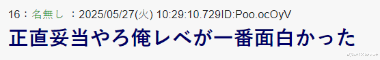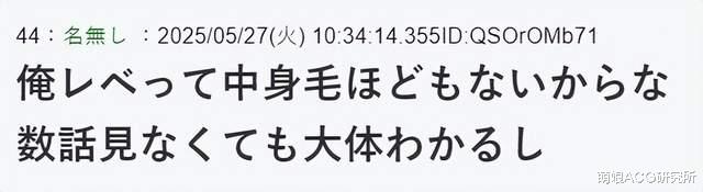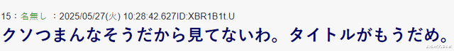 15:名無し :2025/05/27(火) 10:28:42.627 ID:XBR1B1t.Uクソつまんなそうだから見てないわ。タイトルがもうだめ。一看名字我就不想看了,这种自我中二感爆棚的标题劝退。