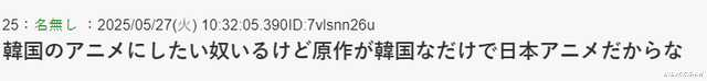 25:名無し :2025/05/27(火) 10:32:05.390 ID:7vlsnn26u韓国のアニメにしたい奴いるけど原作が韓国なだけで日本アニメだからな有人老想说它是“韩漫番”,但制作组是日本的,动画还是日本做的。