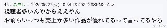 46:名無し :2025/05/27(火) 10:34:28.492 ID:8SPNXJAsv視聴者多いんやからええやん看的人多不就够了嘛。