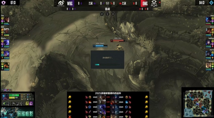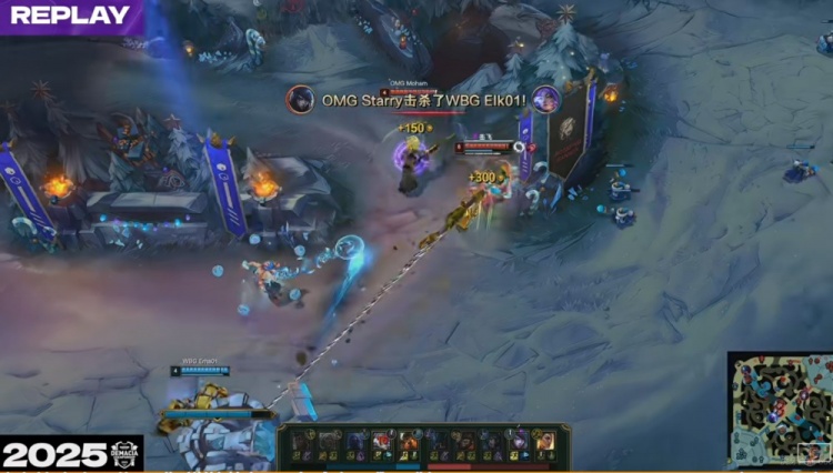 [7:50]Elk芸阿娜前一波被打双招成伏笔,Moham芮尔给到虚弱,Starry厄斐琉斯大招命中,OMG双人完成对Elk芸阿娜的线杀!巢虫则是WBG的2-1!
