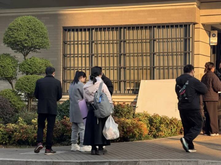 11点出头,浙江中医药大学西门口慢慢聚集起许多家长。