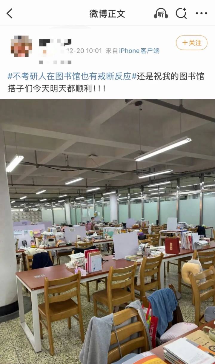 一大早,“不考研人在图书馆也有戒断反应”等话题就冲上热搜,有网友晒出空荡荡的图书馆照片说:“祝我的图书馆搭子们今天明天都顺利!”