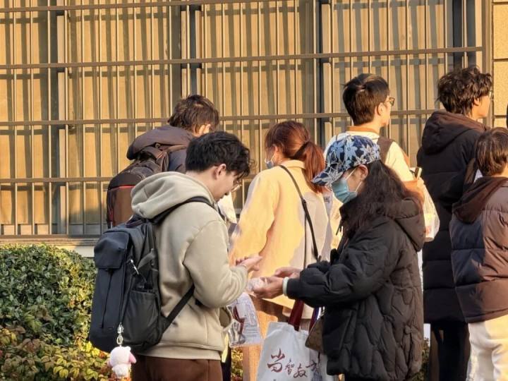 浙江师范大学在“考研加油包”中装点了一战“橙”硕、“苹”稳上岸等祝福语,为备考的学生免费提供暖心茶、营养夜宵和小点心,考试当天,食堂还将定制“定胜糕”供考生领取。