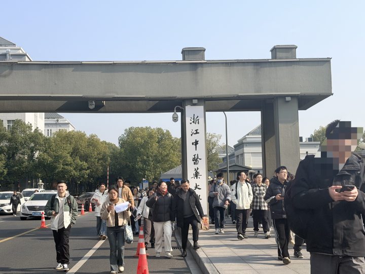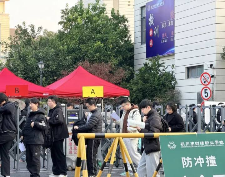 今天上午,记者来到杭州市财经职业学校和浙江中医药大学考点外进行了实地探访。