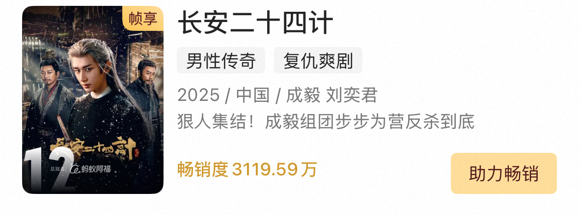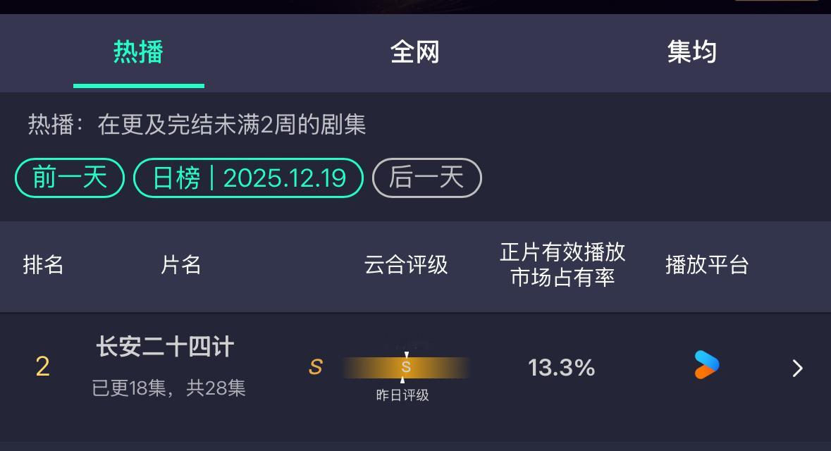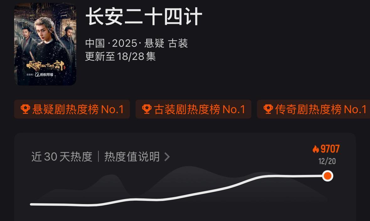 黑马爆剧❗长安二十四计热度破9700,拉新年榜12,百指、灯塔、猫眼、云合,所有