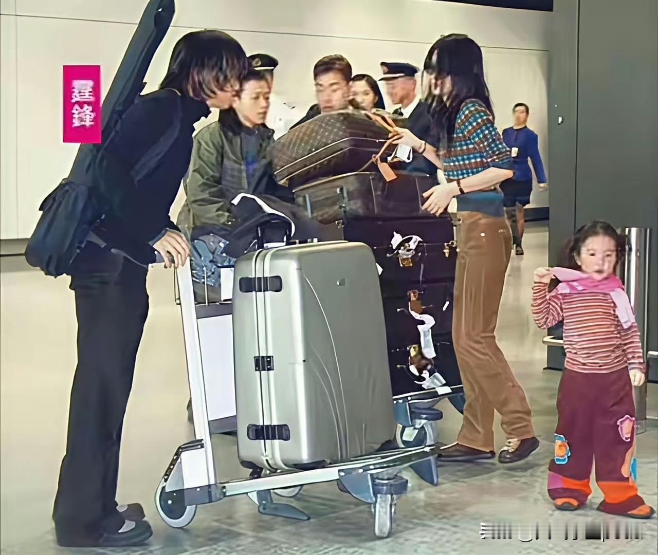 谢霆锋王菲世纪牵手那会儿真是时髦疯了! 机场随便抓拍都像时尚大片——俩墨镜酷盖牵着萌娃,脚边一堆LV老花箱堆得随性。 最绝是王菲随手拎着爱马仕当收纳袋,那股“奢侈品只是日用品”的松弛感,现在看依然是顶流审美天花板啊!