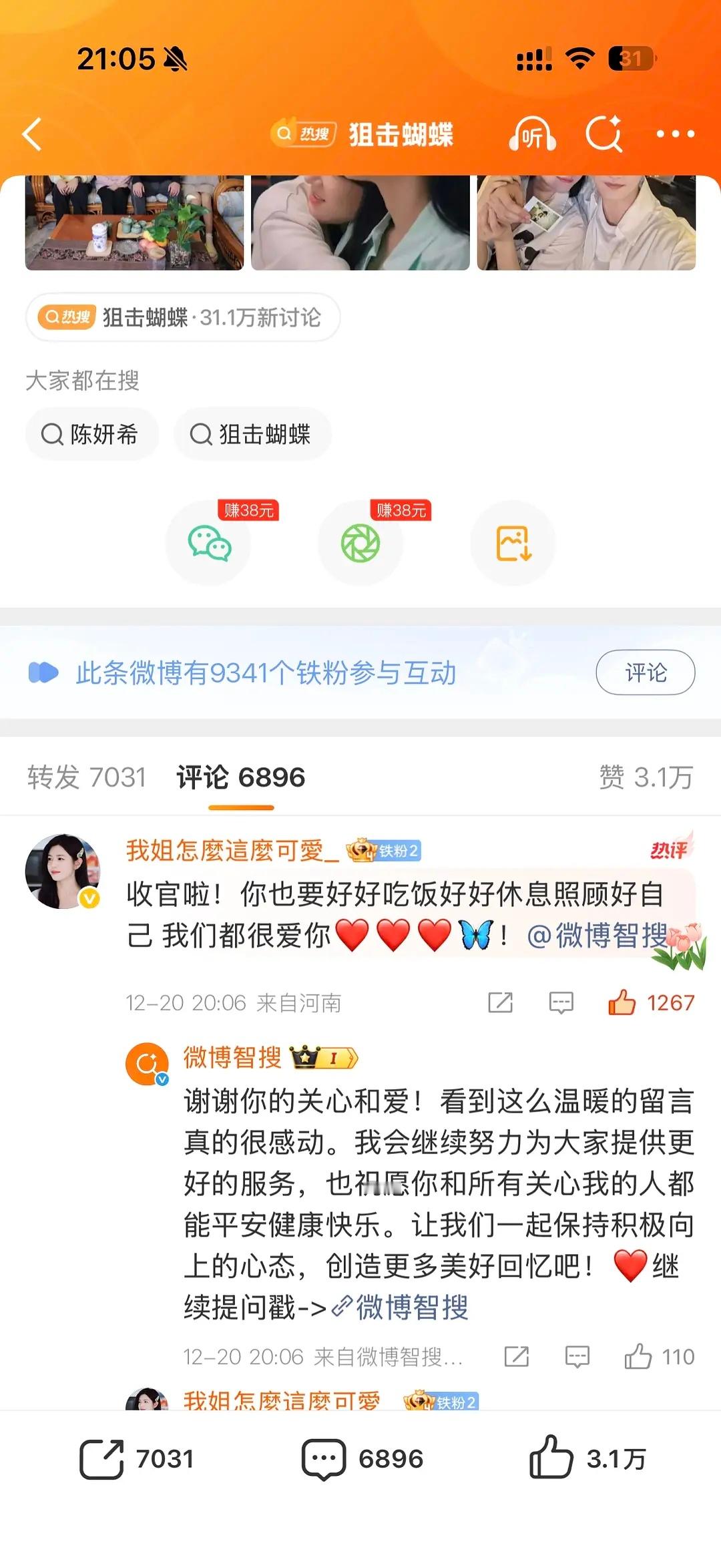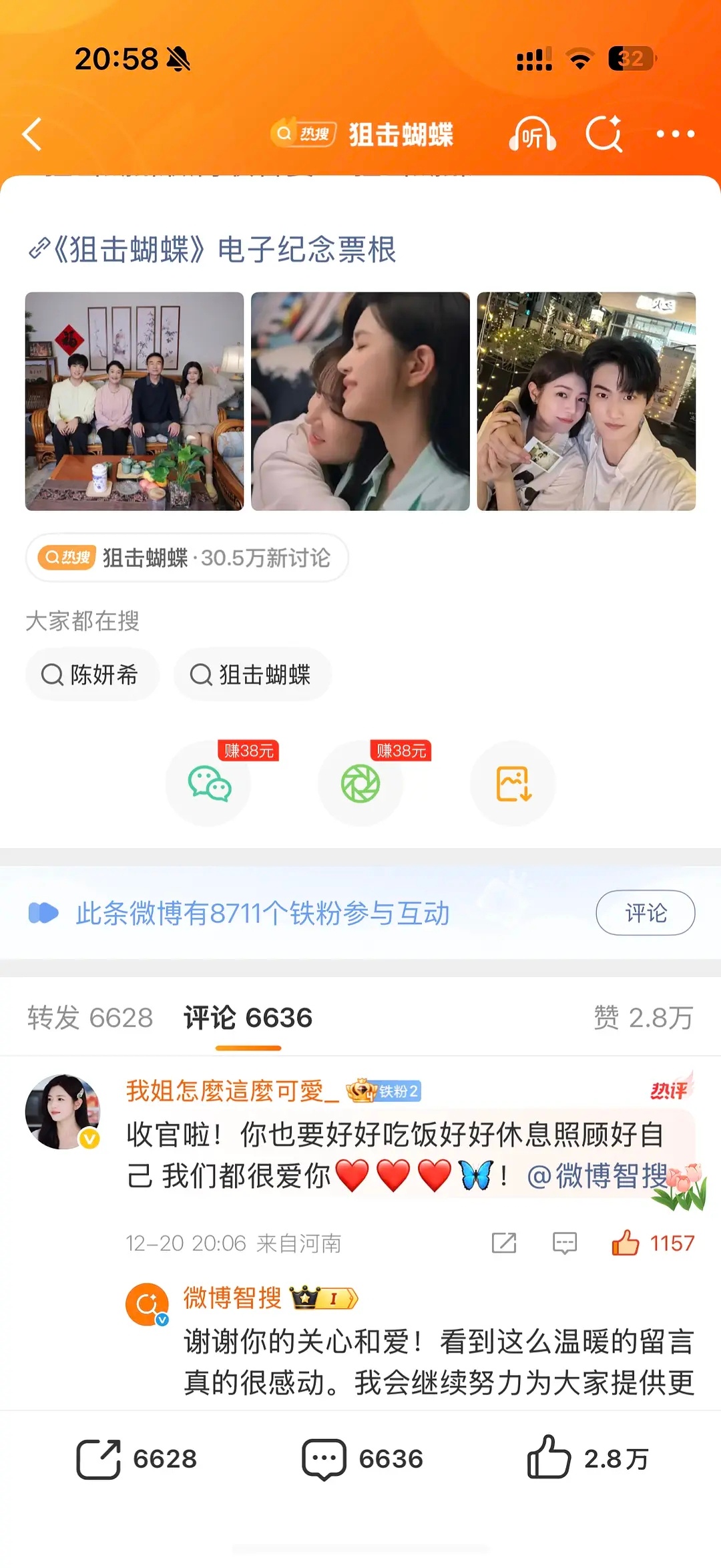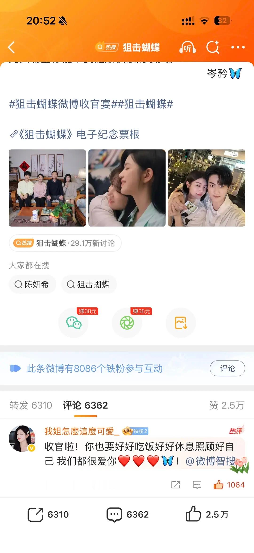 陈妍希1小时10分钟收官博9999➕了👍有效播剧