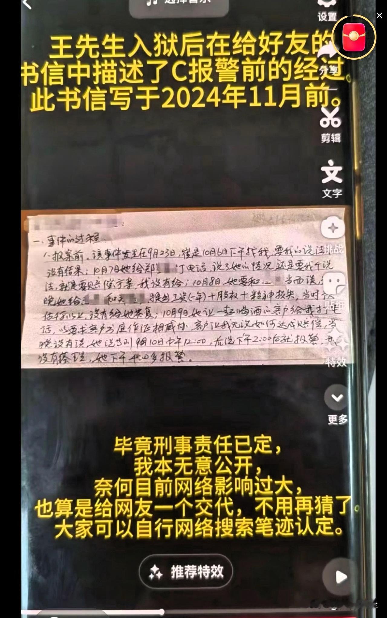王豪狱中手书再现互联网,对崔丽丽是否有“翻杀”效果? 崔丽丽拿到十级伤残证以后,满血复活,开始恢复高强度的体育锻炼,她在评论区与粉丝热心互动,言谈举止积极乐观,完全没有轻生厌世的表现。 有一段手机截屏,出现在崔丽丽的视频评论区,内容是犯罪分子老王在狱中的一段手写文字,说是给好友的书信截图,但从书写的格式和内容来看,更像是有问有答的备忘录。 话说老王的这段手书,都是网上的陈词滥调,内容对于崔丽丽案件走向来说根本没有杀伤力。