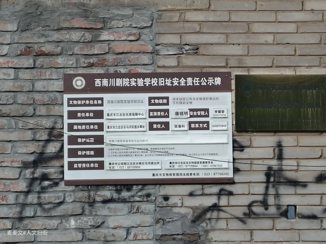 旧址的几幢老建筑,虽是重庆市江北区文物保护点,却相当简陋。仅一幢几百平方的两层旧楼作为办公室和图书室,而教室、练功房、小舞台,还有教师和女生宿舍,竟然都是搭建的老平房。