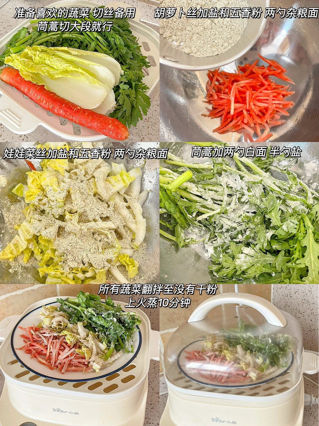 茼蒿用的白面 娃娃菜和胡萝卜用了杂粮粉