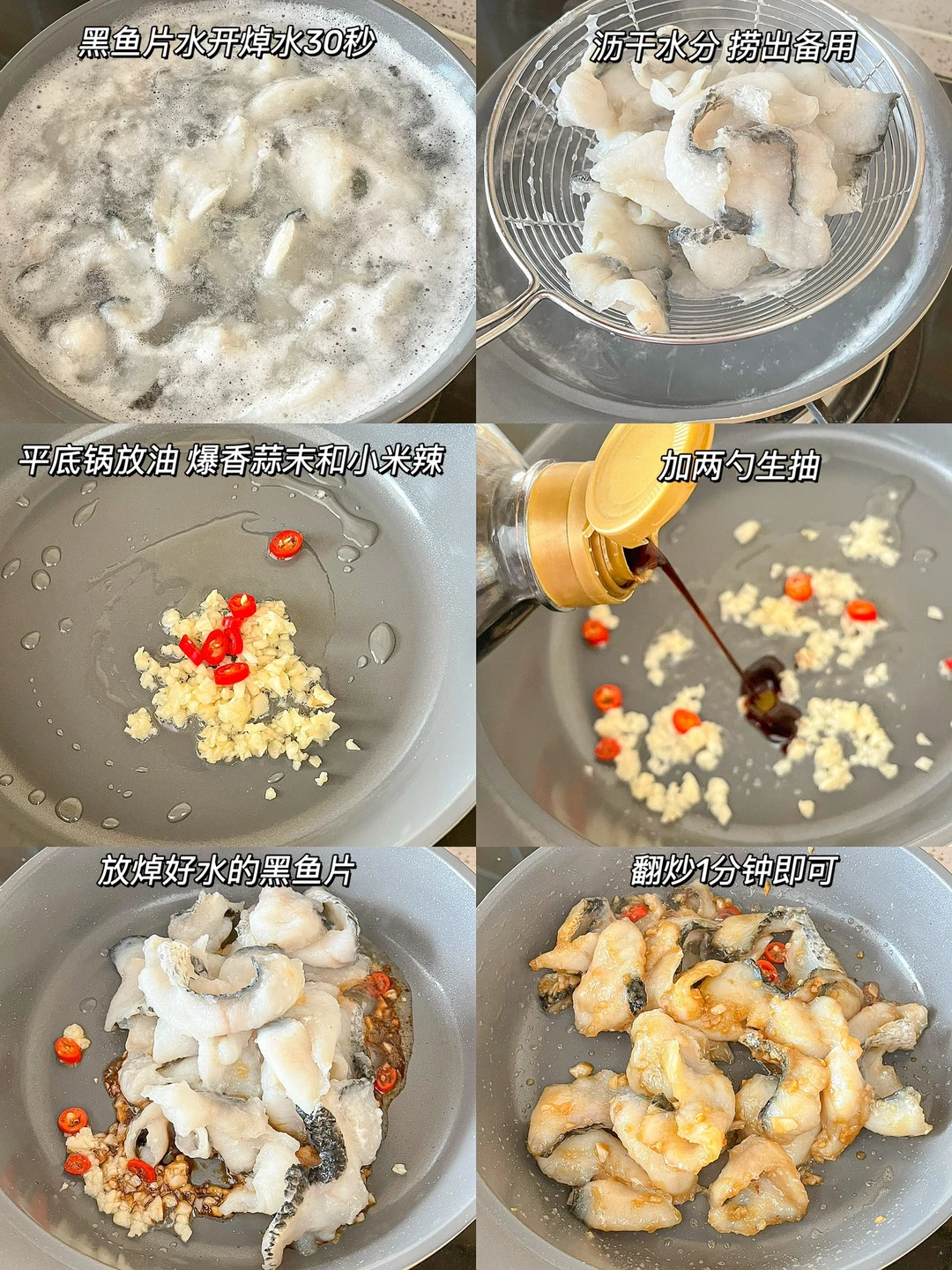 3.起锅烧油,下蒜末、小米辣爆香,加两勺生抽,倒入鱼片翻炒均匀即可出锅