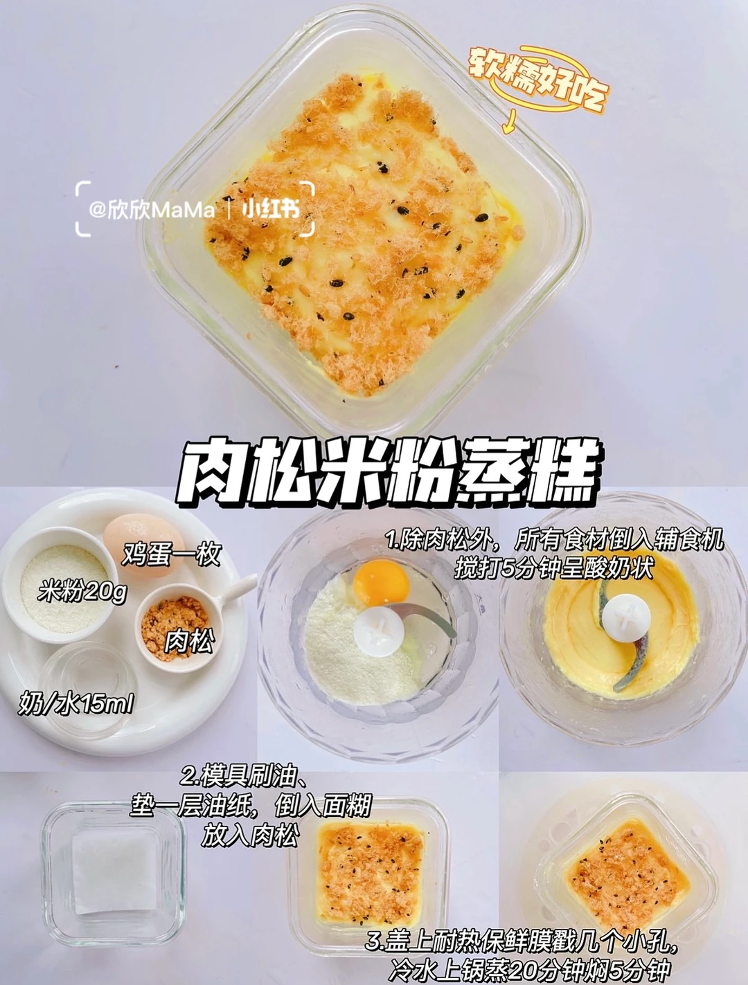 🛒食材:米粉20g、鸡蛋一枚、肉松、奶/水15ml