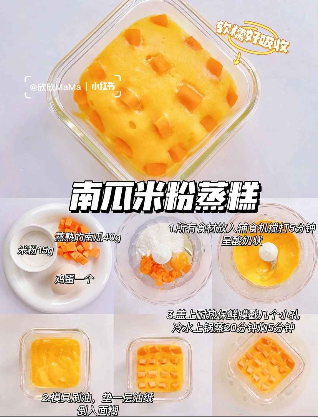🛒食材:米粉15g、蒸熟的南瓜40g、鸡蛋一个