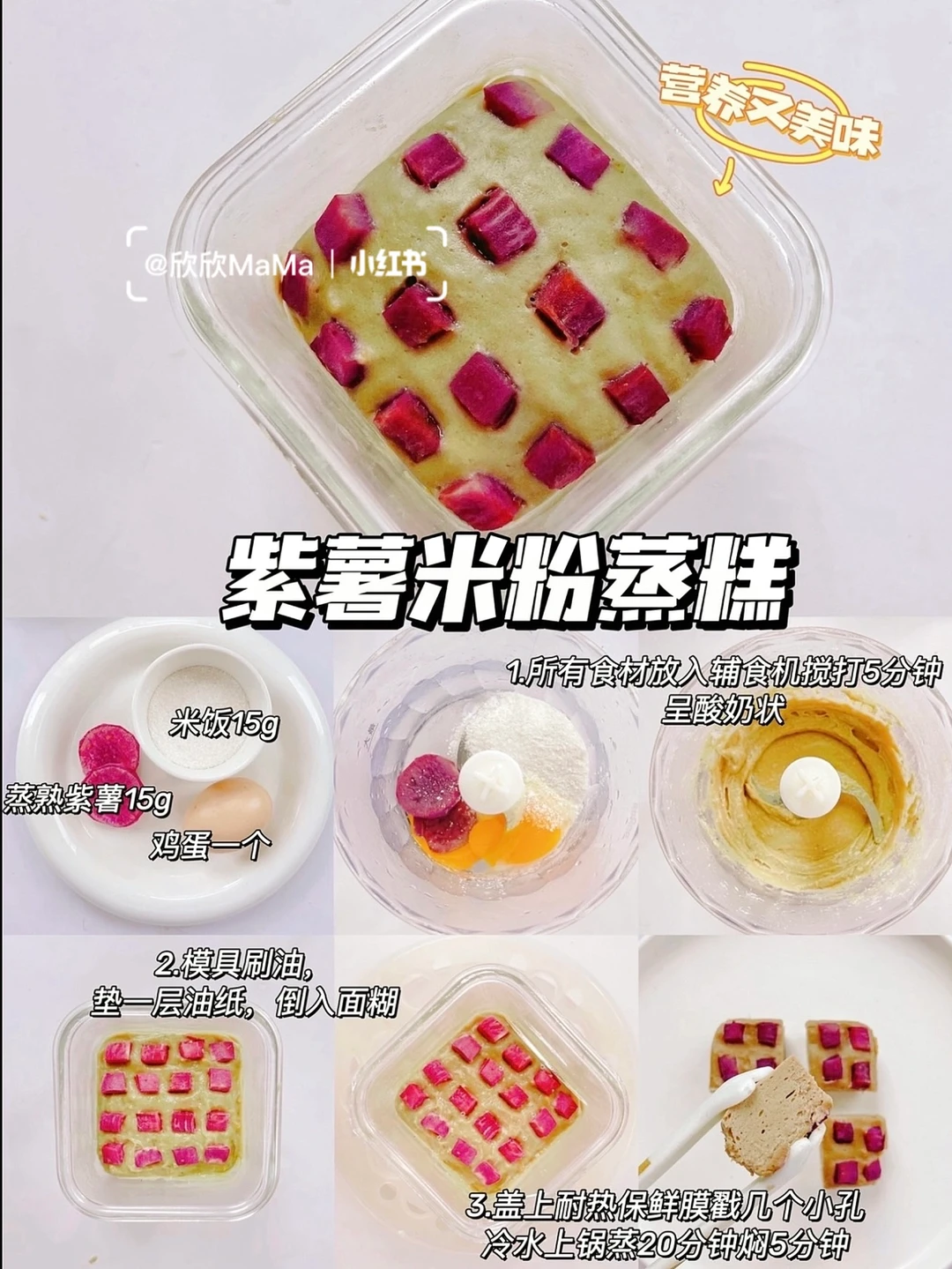 🛒食材:米粉15g、蒸熟紫薯15g、鸡蛋一个