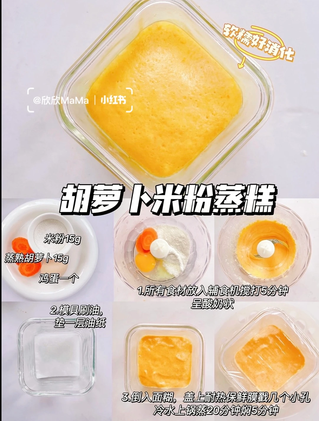 🛒食材:米粉15g、蒸熟的胡萝卜15g、鸡蛋一个