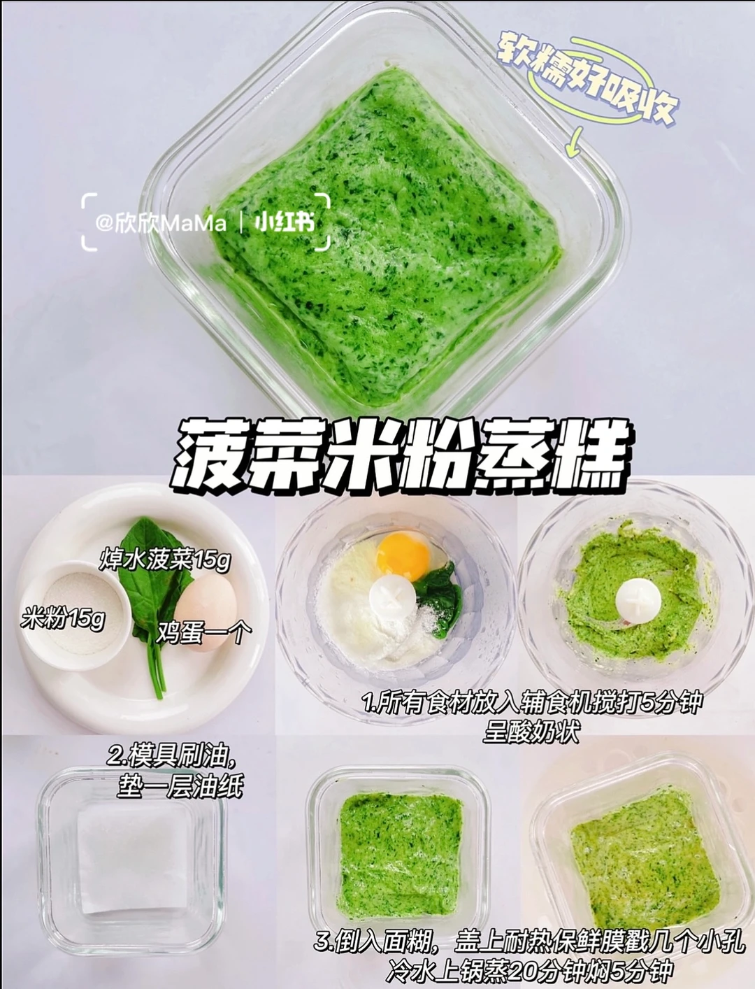 7️⃣西兰花、菠菜焯水后要沥干水分,蛋清没排敏的可以用2各蛋黄来代替