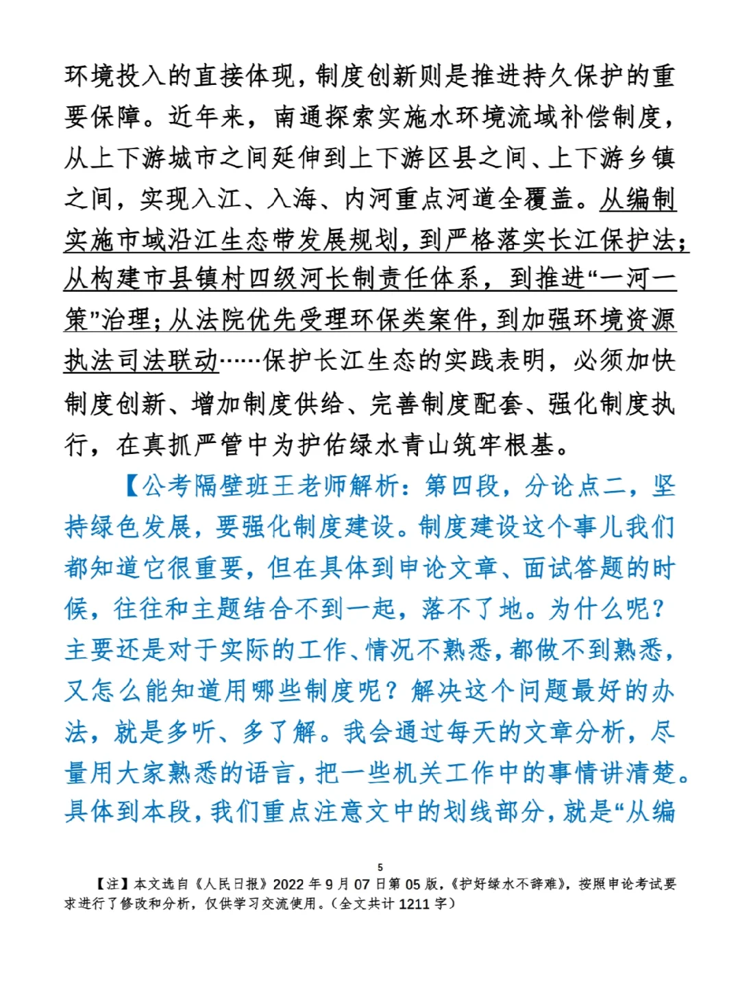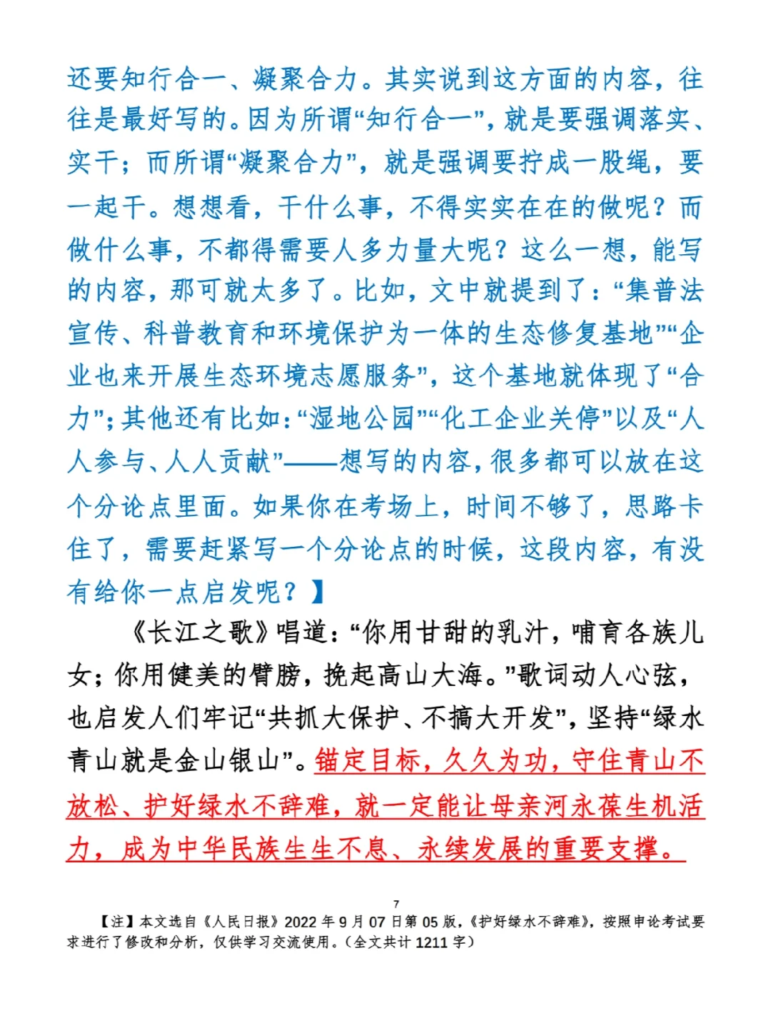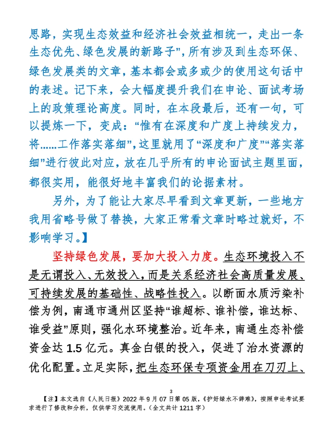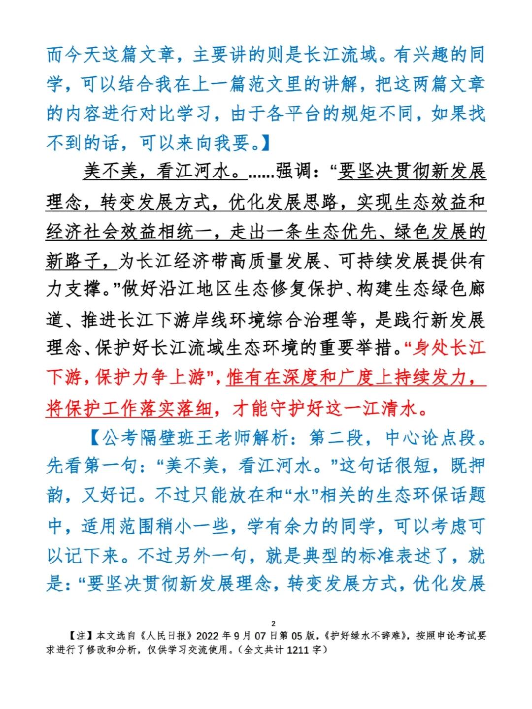 今日打卡作业: 1. 选一句你最喜欢的金句 2. 抄写全文红字+划线部分内容 3. 写完后在留言区打卡 ⭐️ ⭐️ ⭐️ ⭐️ ⭐️ ⭐️ 如何抄写:每天的抄写文章以图片形式发在“公考隔壁班王老师”账号,红色字是重点句和结构句,黑色字是正文,蓝色字是解析,大家抄写时不必抄蓝色字。建议先通读全文(包括蓝色解析部分),做到心中有数再开始抄写,效果会更好。 关于文章:抄写文章来源于人民日报,但每篇文章我都根据申论考试要求进行了修改,主要集中在四个方面:一是重写或修改开头、结尾;二是统一段首句句式结构;三是调整段落字数,使文章结构更均衡;四是简化复杂长难句,使之更具可模仿性。每篇文章修改幅度不同,无论修改多少,都是基于申论考试要求,毫无对人民日报文章品评之意。(此处致敬人民日报) 关于解析:我会在文章每段后面加一段蓝色字的解析,是我自己在抄写时的感悟,篇幅时间有限,不能面面俱到,但求重点突出。如果你有其他感悟,也希望能在评论里分享,我们相互学习、共同进步。 ⭐️ ⭐️ ⭐️ ⭐️ ⭐️ ⭐️ 这里是公考隔壁班王老师独创的“每天半小时・申论80分”抄写团,欢迎加入我们!