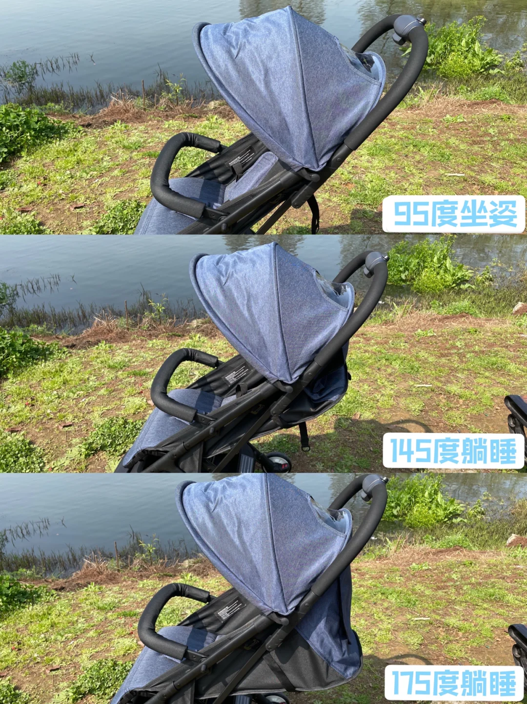 靠背95度到175度无极调节,宝宝坐的直,不弯腰驼背,有的是105度,宝宝坐不直,一直弯腰,躺的幅度175度,防呛奶