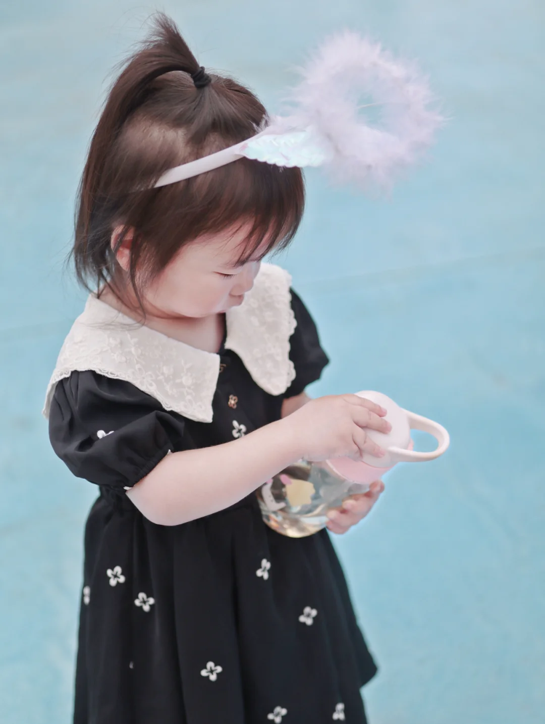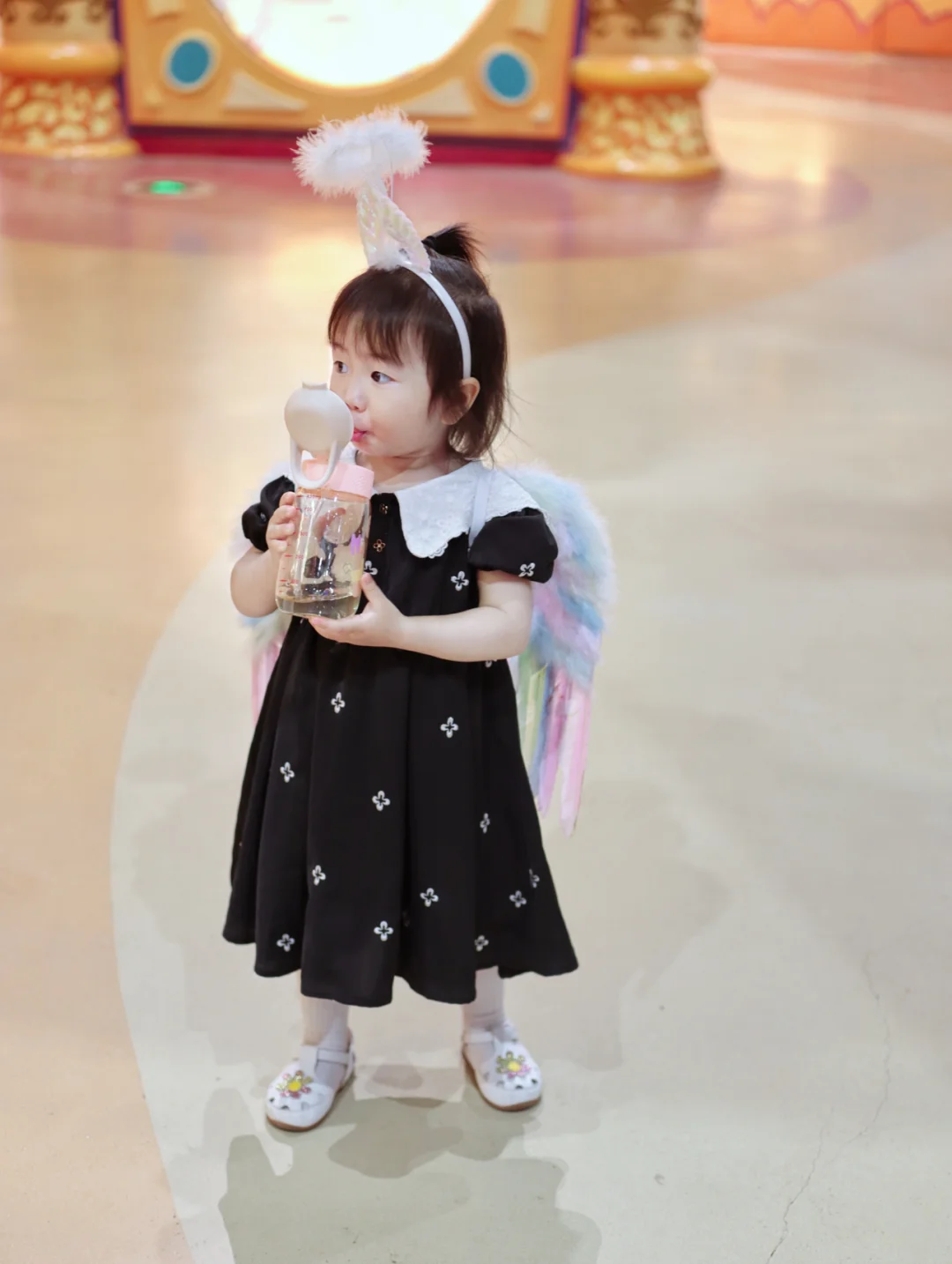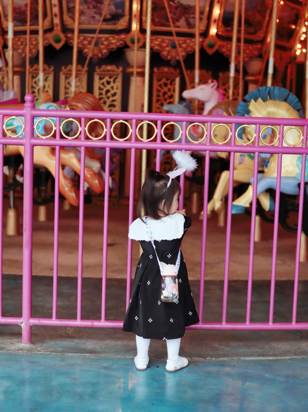 颜控麻麻眼光还是不错的,给Cyndi的这一套装备敲吸👀,园区的好多小宝宝都羡慕的不得了😍黑色连衣裙👗➕小天使发箍➕hoomey水杯,妥妥的小公主👸穿搭,她自己开心玩耍,我就负责给她拍美美哒照片就可以啦😍
