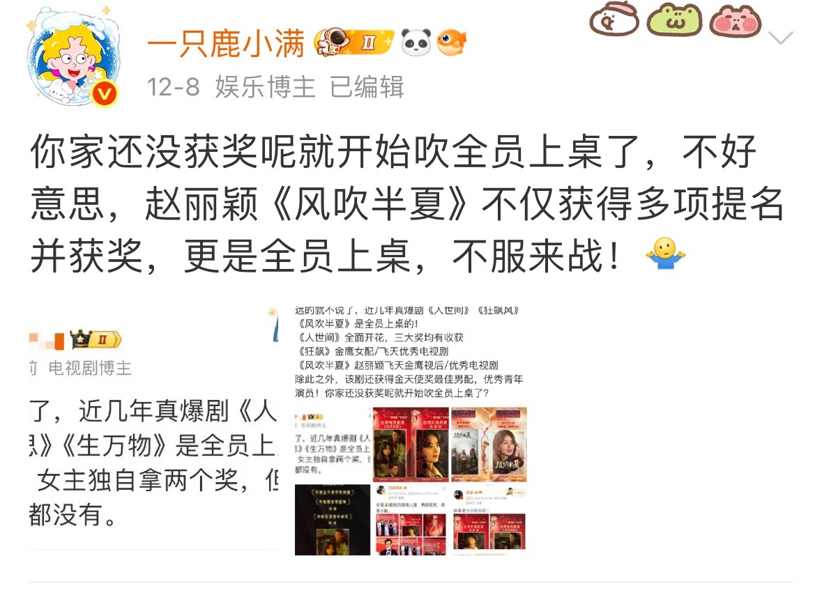 我又想起之前这个了,麻风姐姐的剧配角都获奖,(女主除外)而赵丽颖的剧主角总获奖,