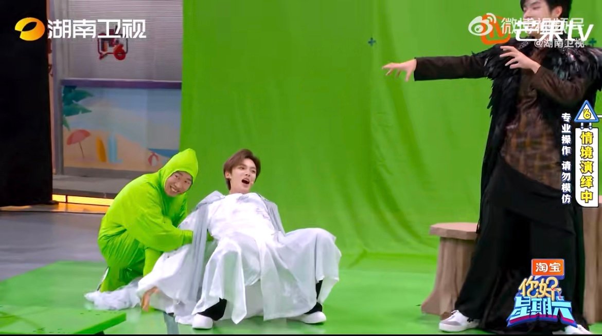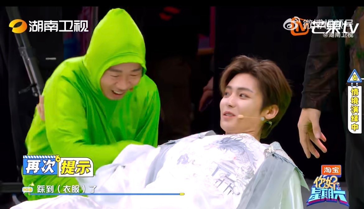 杨迪全场最忙的小绿人 “绿幕不 NG” 环节杨迪化身全能小绿人,控制道具、帮扶嘉宾忙个不停,悬空的脸更是自带笑点,承包了全场欢乐~你好星期六