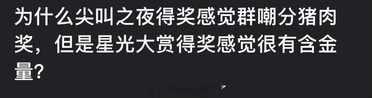 为什么尖叫之夜得奖感觉群嘲分猪肉奖,但是星光大赏得奖感觉很有含金量?