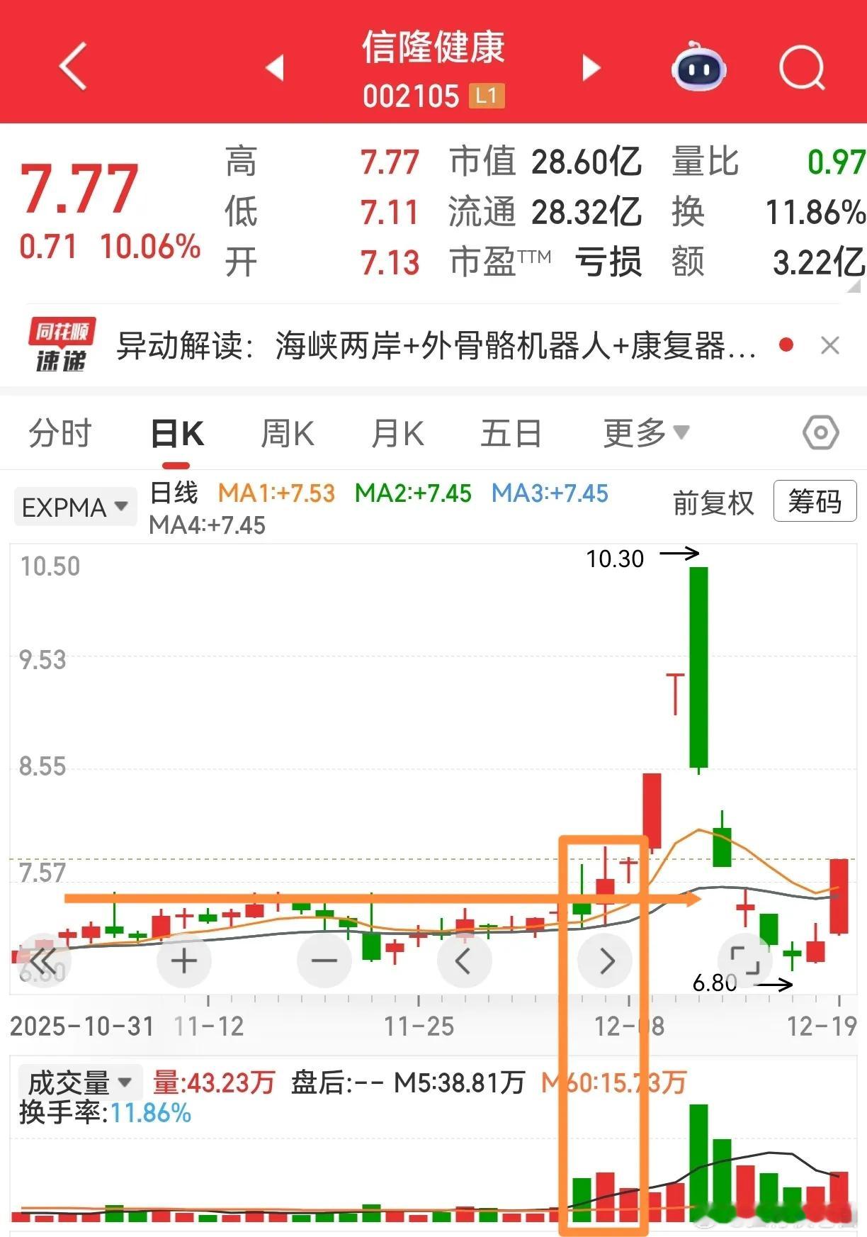 嘉美包装VS信隆健康。嘉美包装,是因为消息面出现了连续一字板的涨停。这里我们要研究的不是目前能不能进,或者说后面还能涨多少。而是要思考和理解在涨停之前几天的走势形态,有没有蛛丝马迹可以寻觅。看看K线图,先是回调挖坑,然后放量回升并站到左峰之上,再回调两天后涨停,确认突破有效。涨停是缩量的,涨停次日倍量阴线,下跌不多,然后再放量反包阴线,这个放量反包阴线是一个标志性的K线。说明主力有决心有信心,而且提前获知了散户不知道的信息。有人会说,三个一字板,是因为消息,那是只看表面,不懂真心。你以为主力前面这些动作是蒙的吗?太单纯了。K线会说话,但是要讲给懂的人听。有人要我分析信隆健康,此股前面有过分析,是在突破左峰时说的,后来两个涨停,可惜跟随福建icon一路的回调了。回调是以一根放大量大阴线开始的,这种回调有点过于沉重,短期想越过大阴线比较难,周五的涨停是在下午封板的,也是跟随性质多一点,毕竟回调幅度比较大,有个反弹也可以理解。能站到生命线之上,已然不错了。特别提醒:贴图欣赏,并非推荐,据此操作,风险自担。✦✦✦本人仅此一号,无微信群,无公众号,不主动加人,主动加人者是骗子。请提高警惕,否则损失自负。✦✦✦