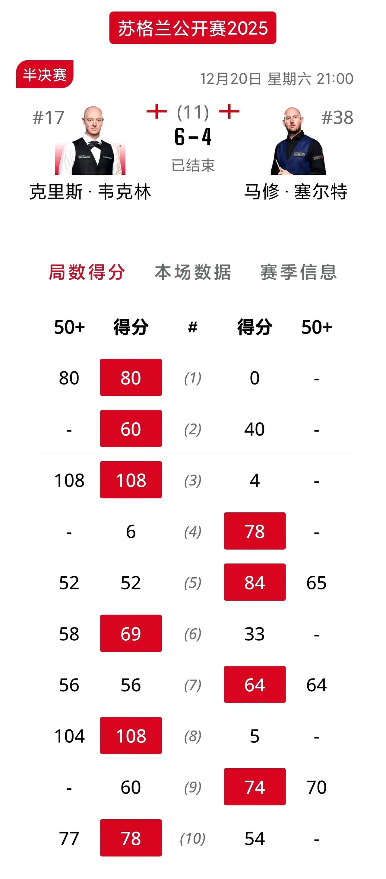 常冰玉大胜艾伦挺进决赛!这场苏格兰公开赛半决赛落下帷幕,继连胜斯佳辉,威尔逊和塞尔比三位世界前十六后,今天让艾伦也品尝了失败的滋味,6:1大胜对手,基本上没有给对手什么机会,晋级决赛,冠军已经在招手,面对瓦克林非常硬,必须发挥自己敢拼敢打的优势,不要出现纠缠局,加油……