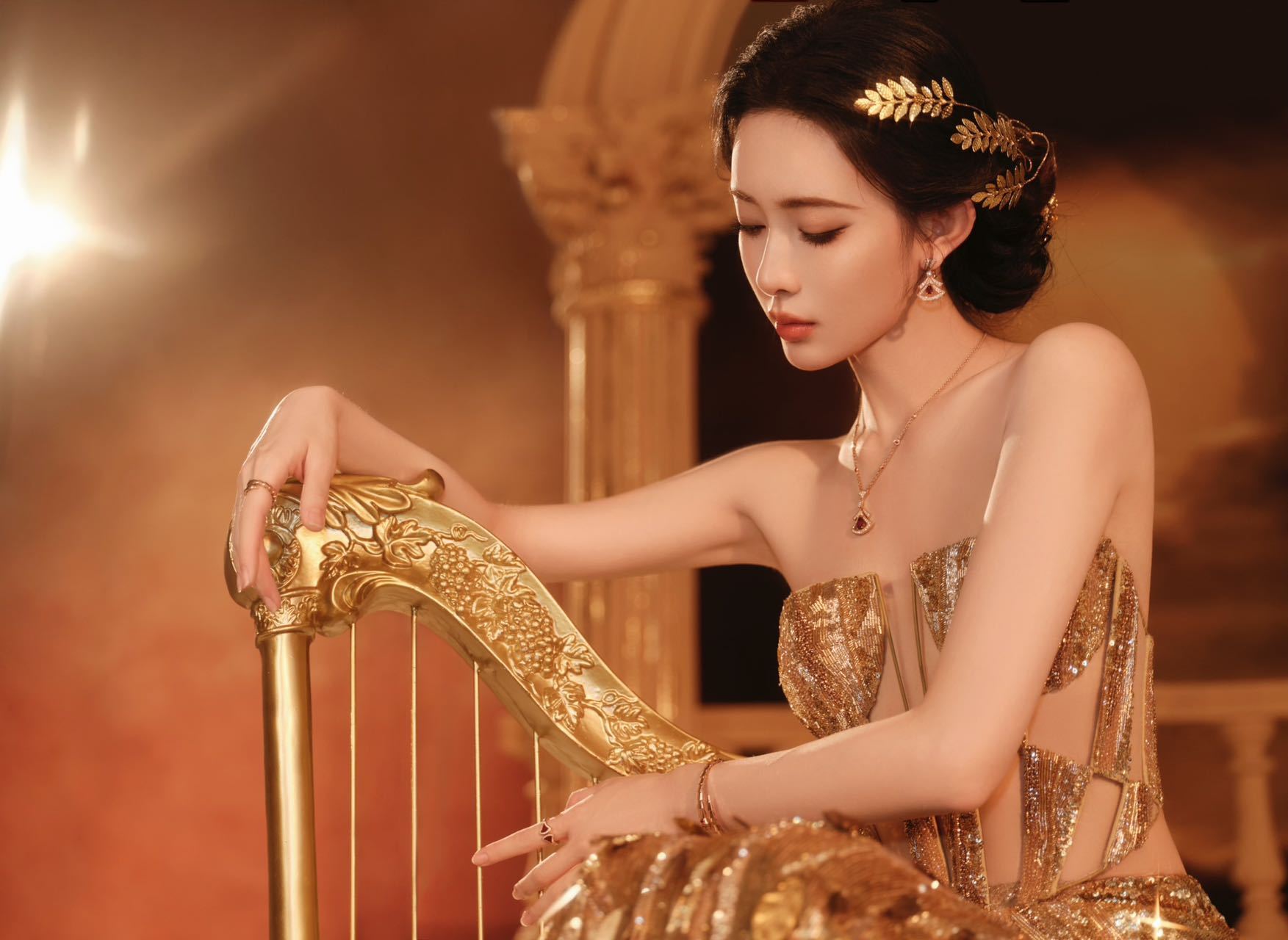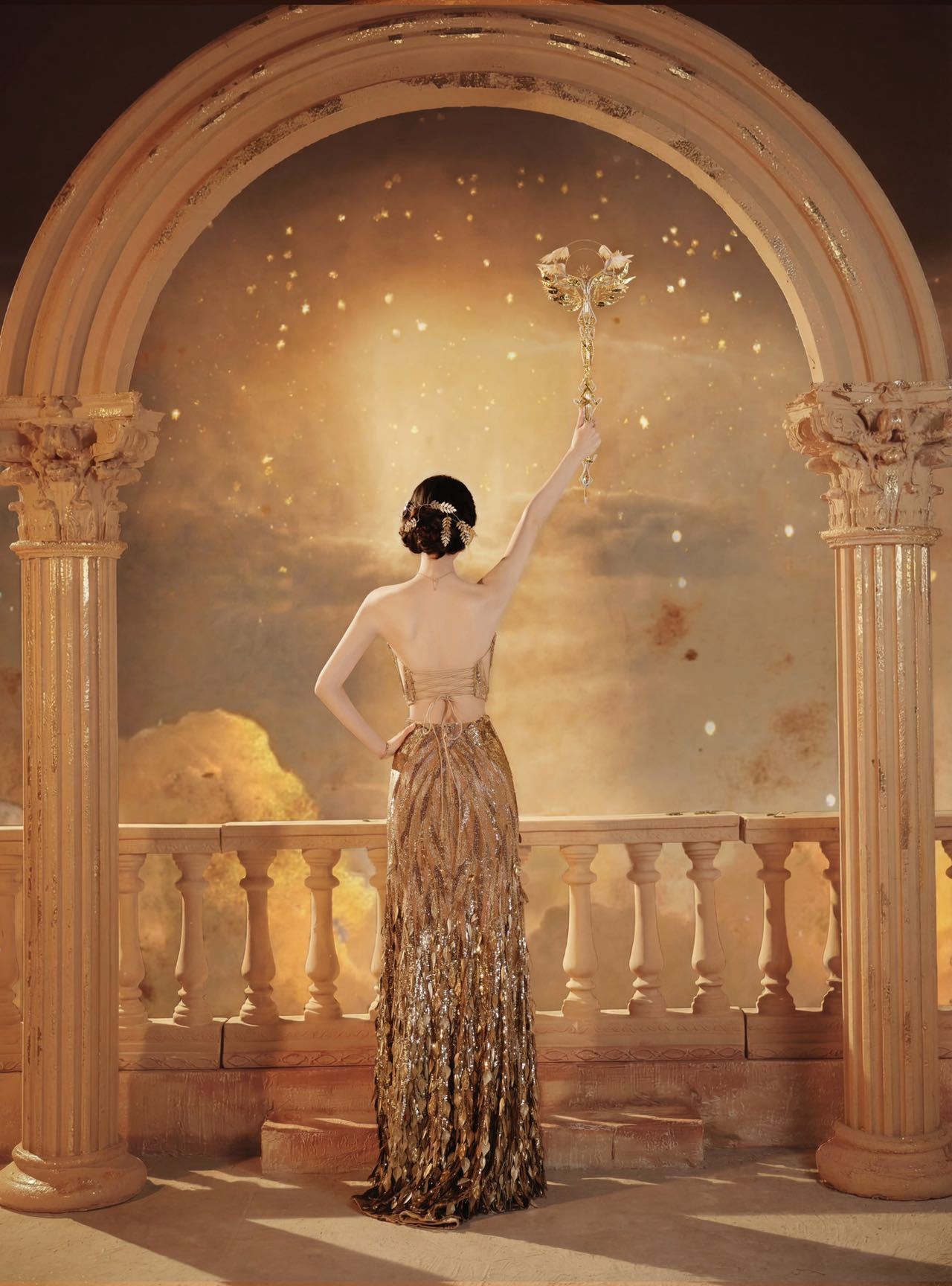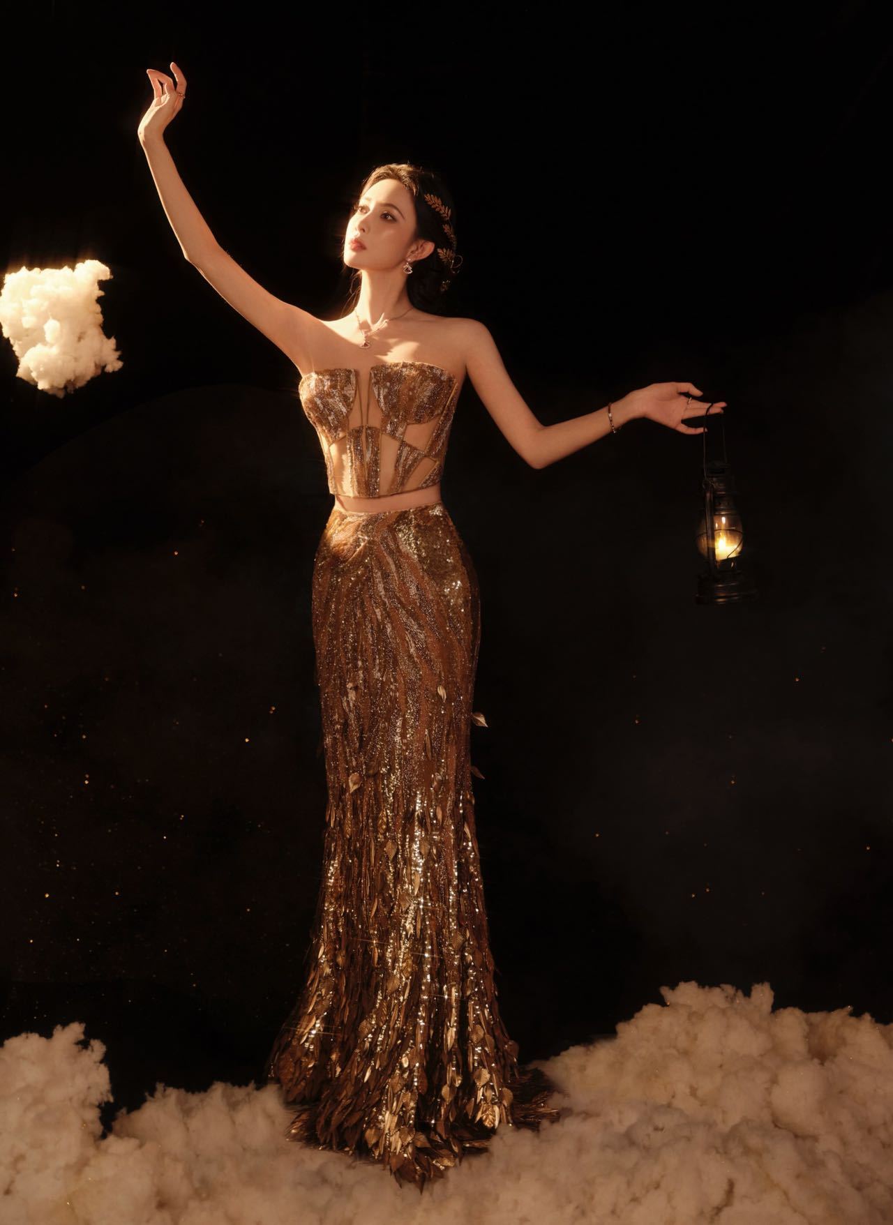 孟子义鎏金女神 星光大赏红毯封神!鎏金长裙宛如神女降临,流光溢彩间尽显优雅高贵。