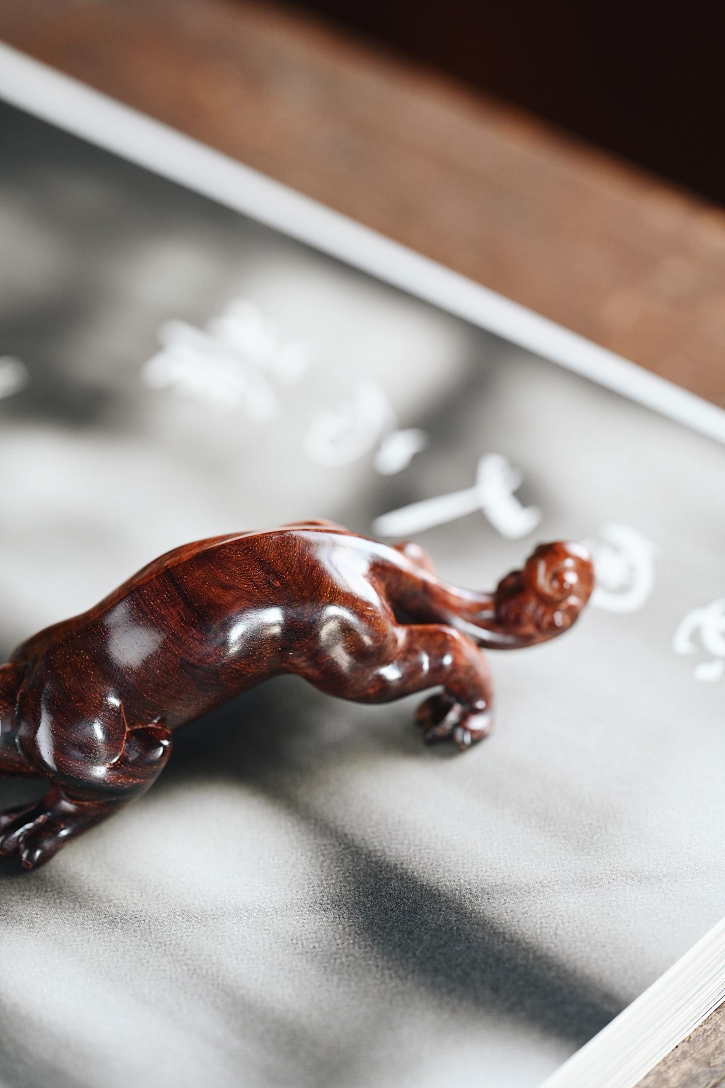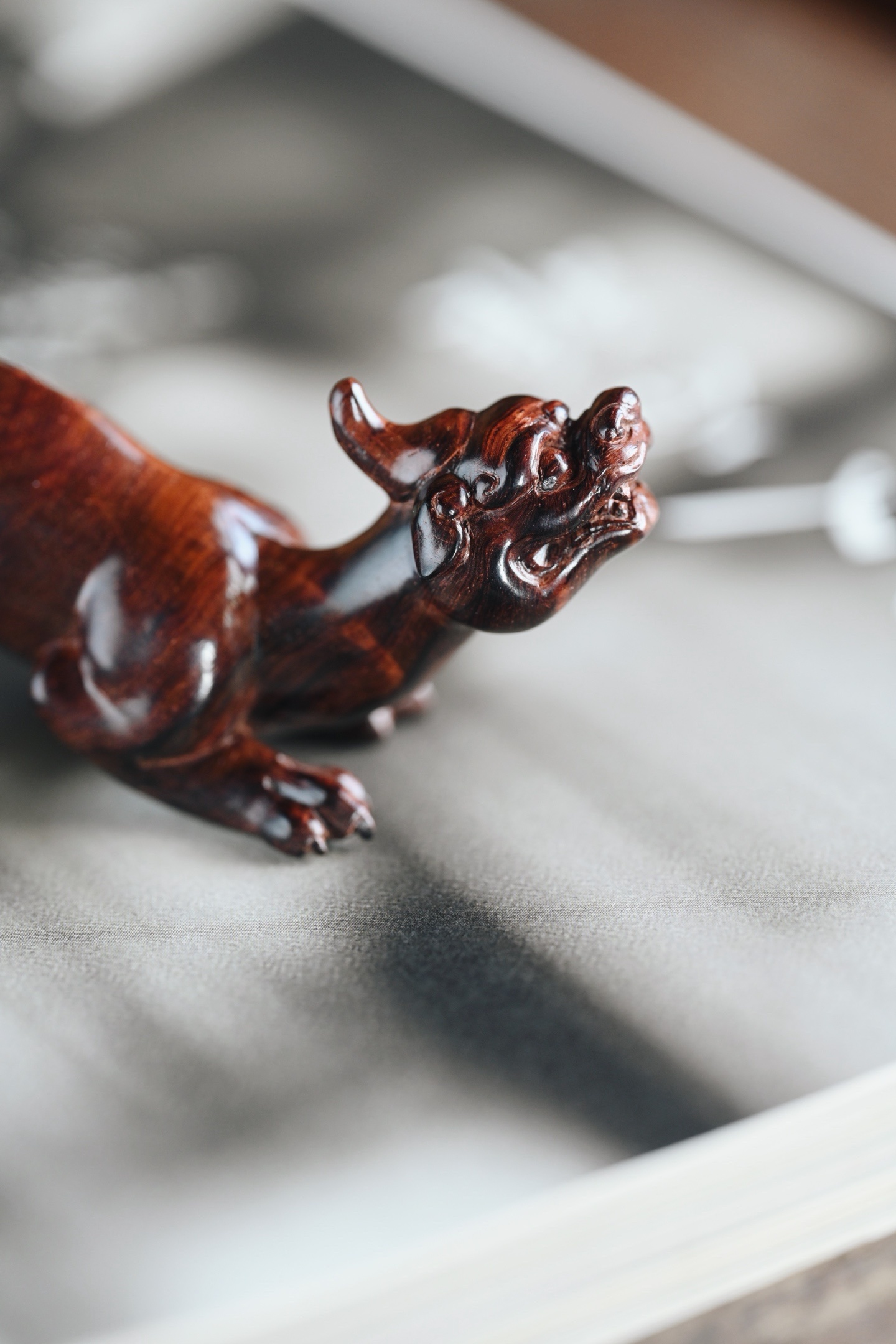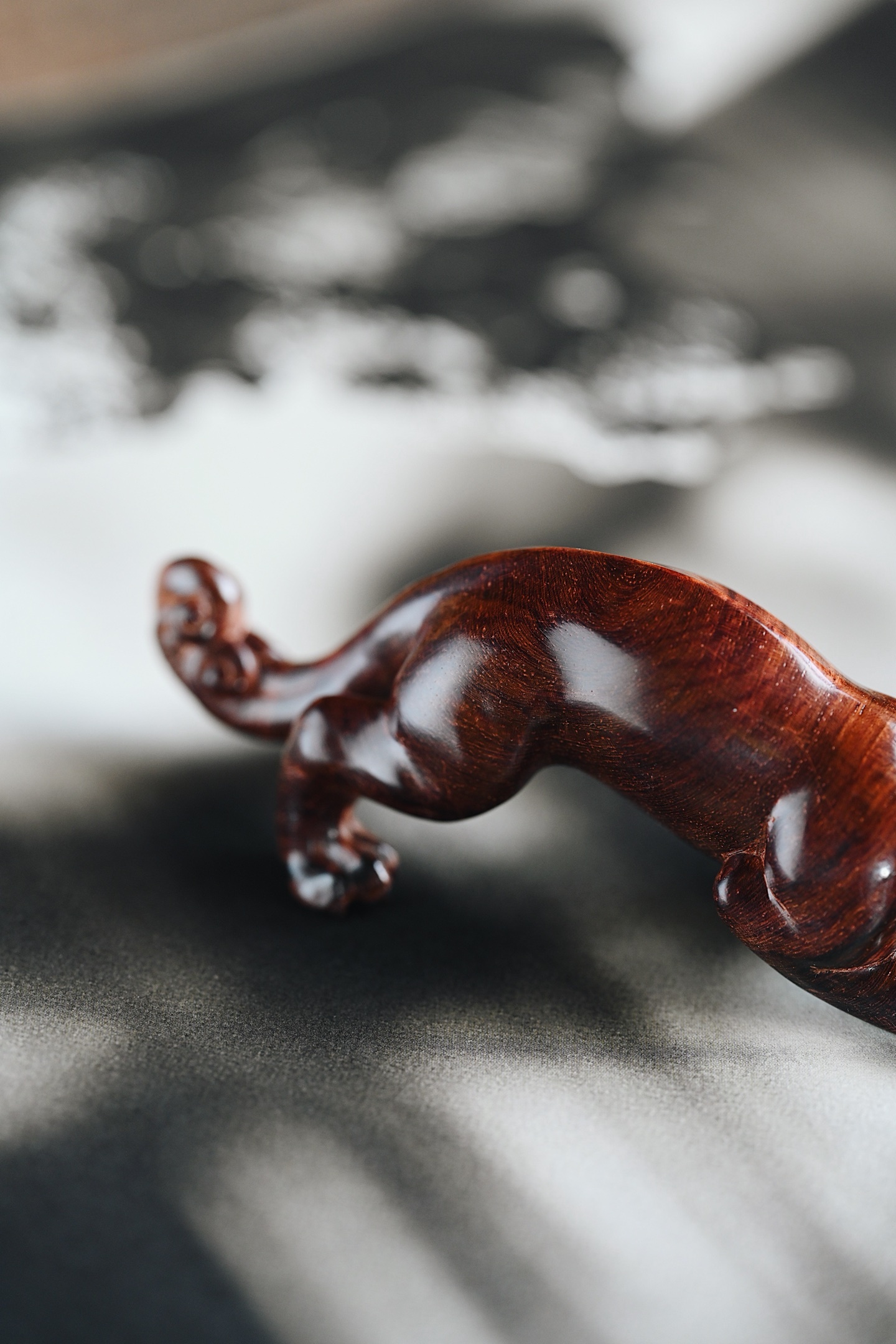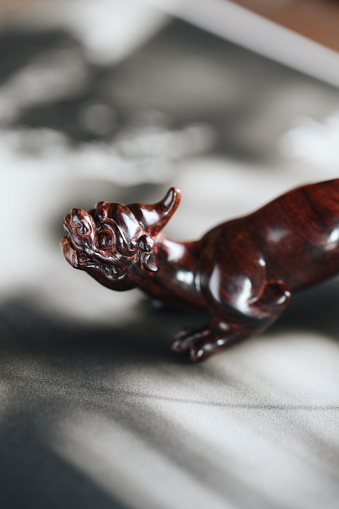 黄花梨 | 螭龙紫油梨,料质细腻,螭龙身形矫健,游宛欲行,圆首阔口,双目炯炯有神,线条流畅自然,形态生动,造型古拙,置文房陈设,意趣盎然。11.5*3.2*4cm 33g