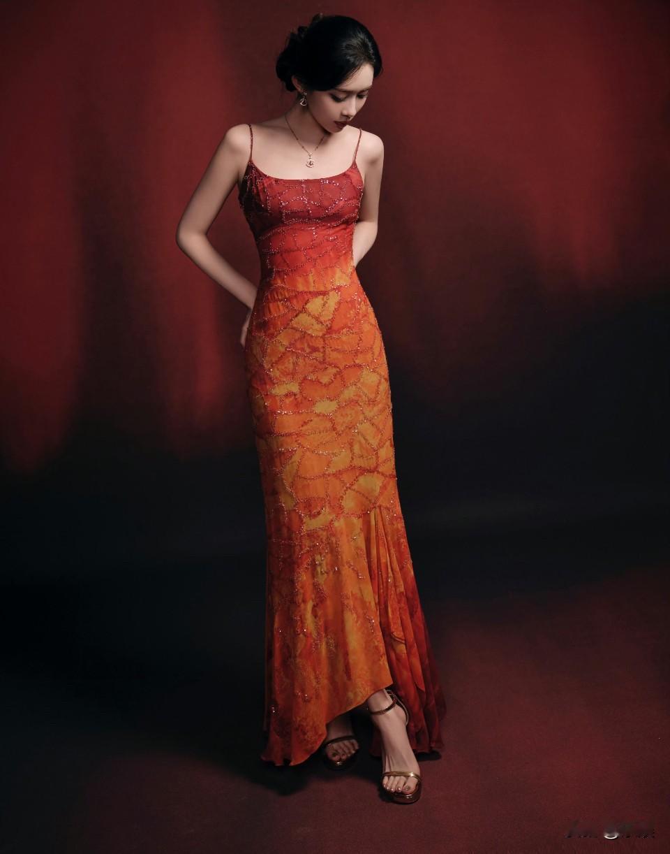 孟子义第二套来自2002年的古董Elie Saab 惊喜上身演绎了来自ARCH COUTURE的Elie Saab 2002 春夏定制系列渐变色吊带燃烧裙装,搭配上BVLGARI珠宝,宛如盛放的红玫瑰,明媚而热烈! 孟子义今晚的两套都好漂亮,很适合她,鎏金那套很典雅高贵,发型也很利落,这套简约又大气,都好喜欢😍孟子义穿搭 孟子义太美啦