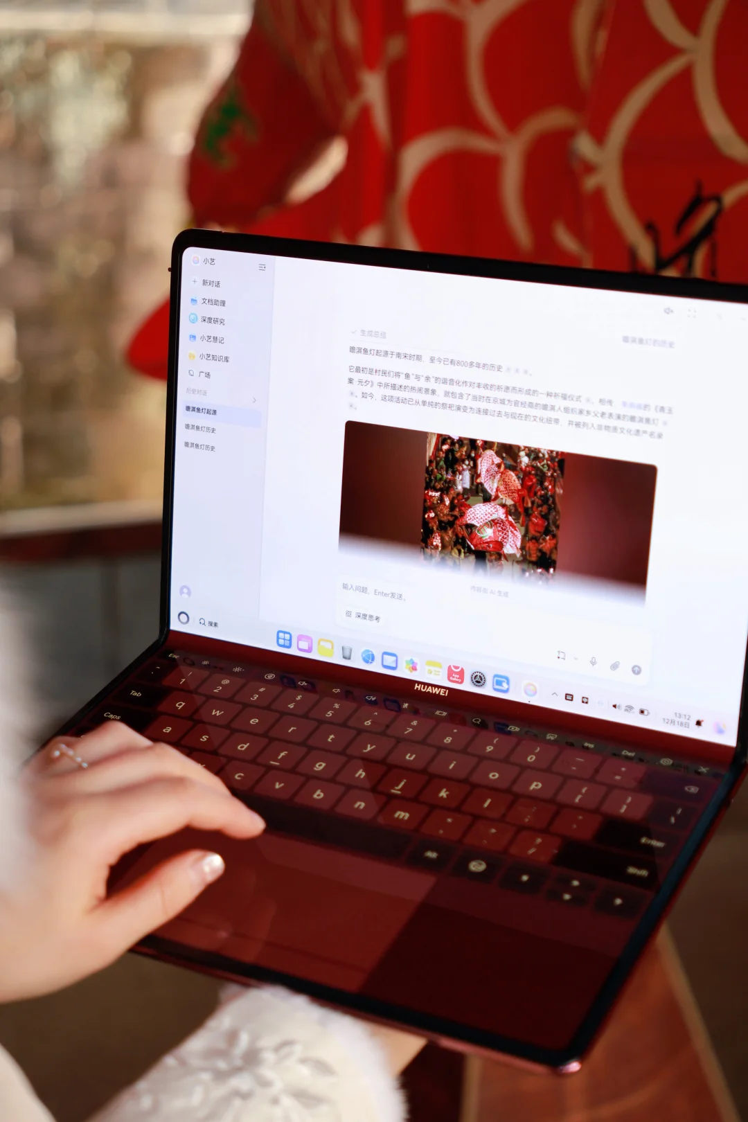 跑到了安徽瞻淇村嬉鱼灯啦 摸摸鱼头,万事不愁~ 举着鱼灯 走在村落街头巷尾 慢下来感受和记录下徽州非遗文化的魅力 是独属于中式的浪漫 出来也要带着鸿蒙折叠电脑 鸿蒙互联让我随时大屏查看手机里的照片和文件 只要轻轻一碰就能传到电脑上编辑 就算在旅游也不怕耽误工作啦 瑞红色在古村落中更加有东方韵味了 细看还有锦瑞结压纹 吉祥寓意拉满~ 新的一年快到了 怀揣超大折,满载开门红呀 祝我们新的一年一起红运连连🧨ˎˊ˗