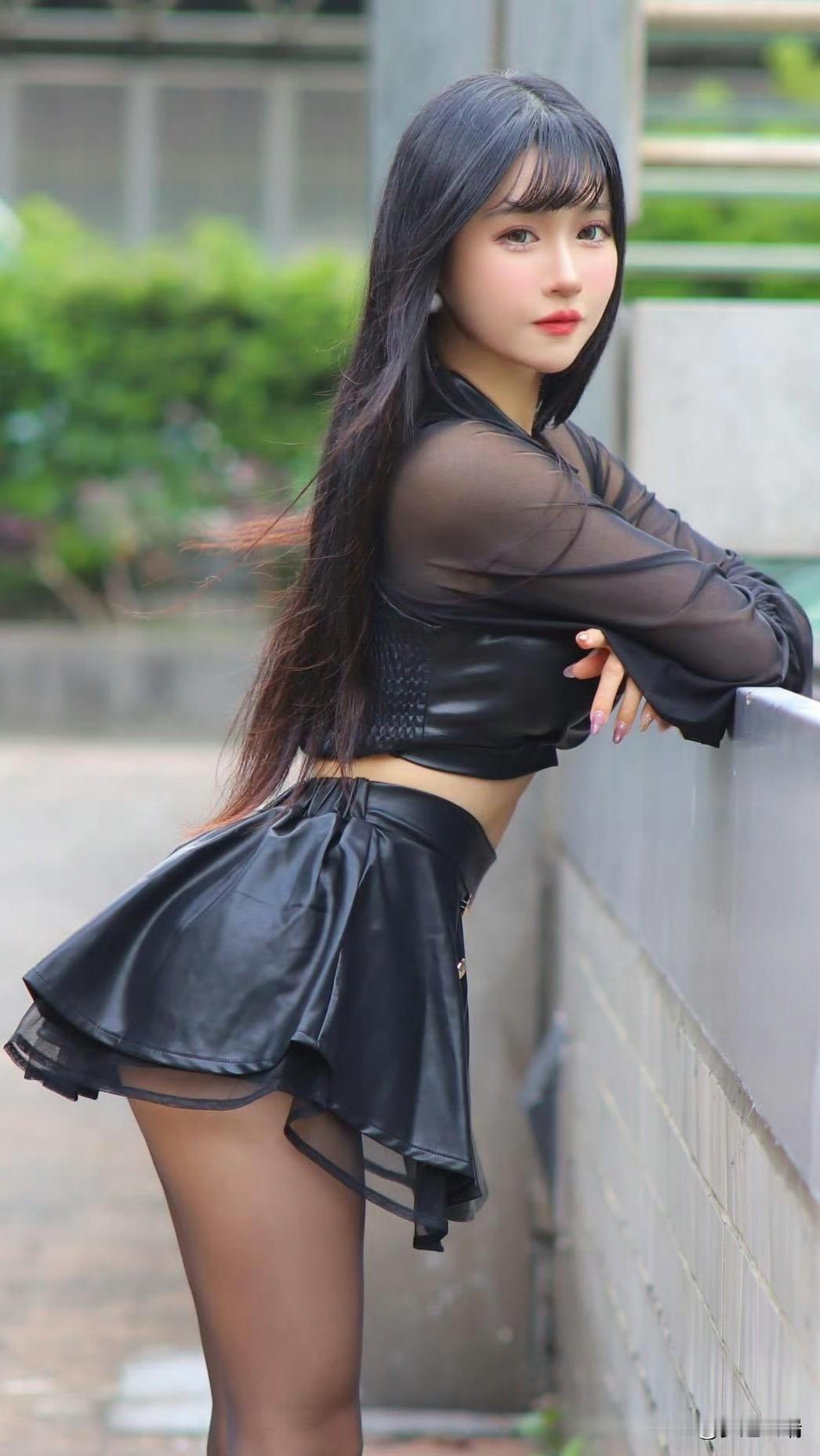 都市酷炫风穿搭,黑色皮质裙装搭配透视长袖,尽显时尚魅力!💃🏻✨
